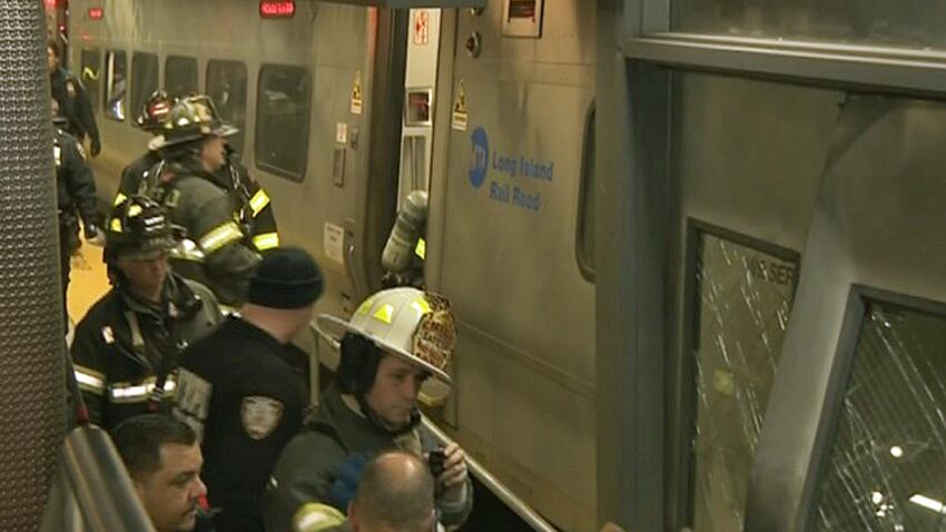 The Long Island Rail Road train derailed at the Atlantic Terminal..
