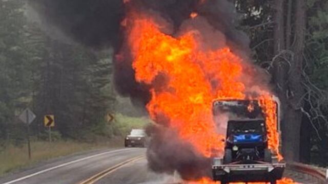 The fire caused troopers to close the road in both directions until it was extinguished.