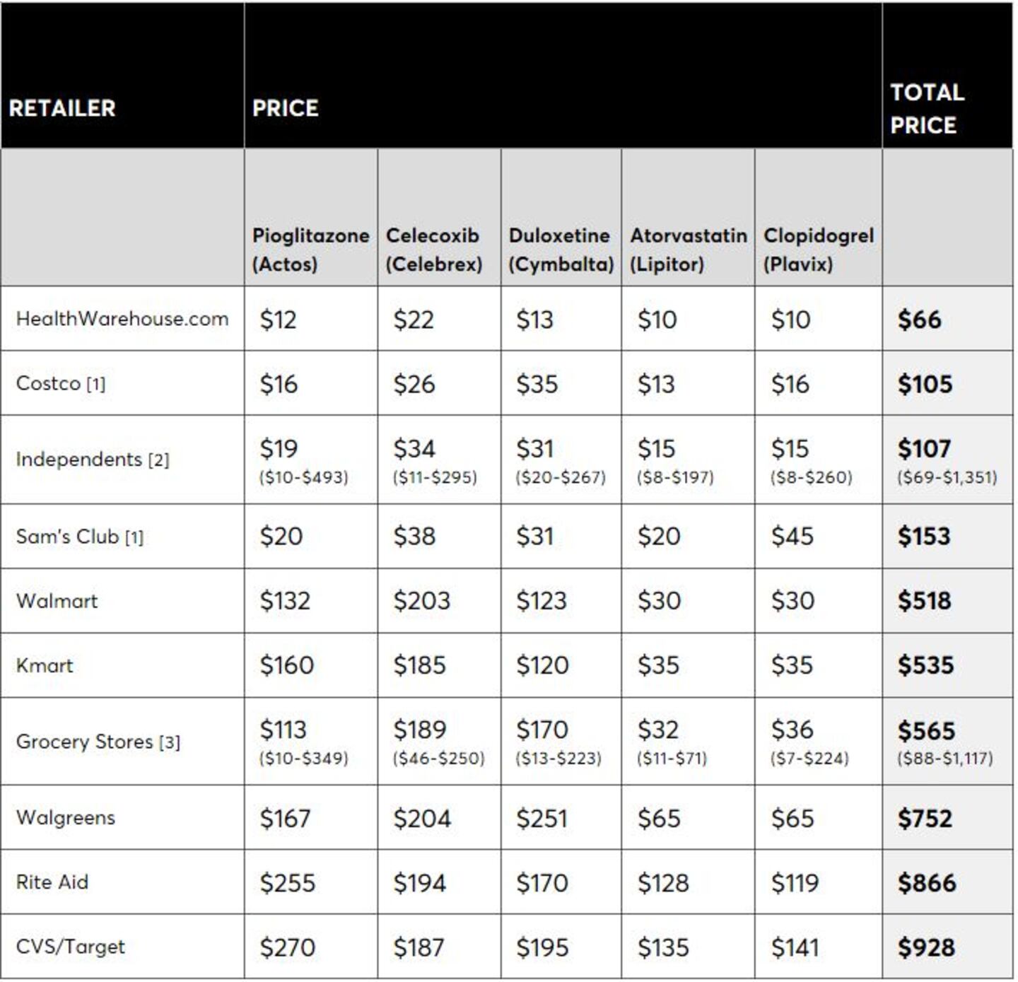 As you can see, Costco was the second-cheapest option out of a variety of big name pharmacies and independent players. They were bested only by HealthWarehouse.com.