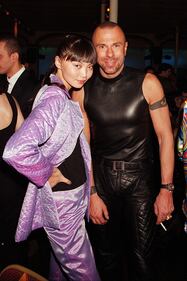 Photos: Manfred Thierry Mugler through the years 1996: Fashion designer Thierry Mugler pose with a model during the "Venus de la Mode" at Salle Wagram as part of Paris Fashion Week on March 17, 1996, in Paris. (Stephane Cardinale/Corbis via Getty Images)