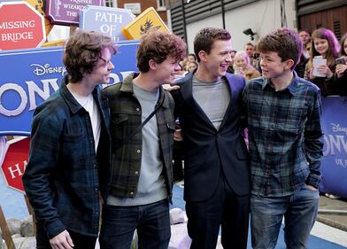 Photos: Tom Holland through the years 2020: Sam Holland (from left), Harry Holland, Tom Holland and Paddy Holland attend the UK premiere of Disney and Pixar's "Onward" at the Curzon Mayfair on February 23, 2020, in London. (Gareth Cattermole/Getty Images for Disney)