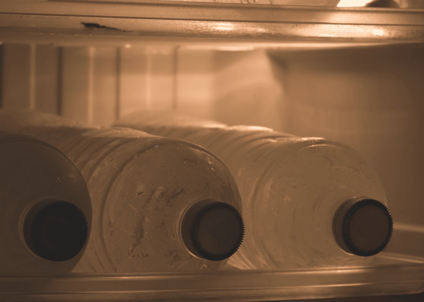 Fill water bottles with ice water