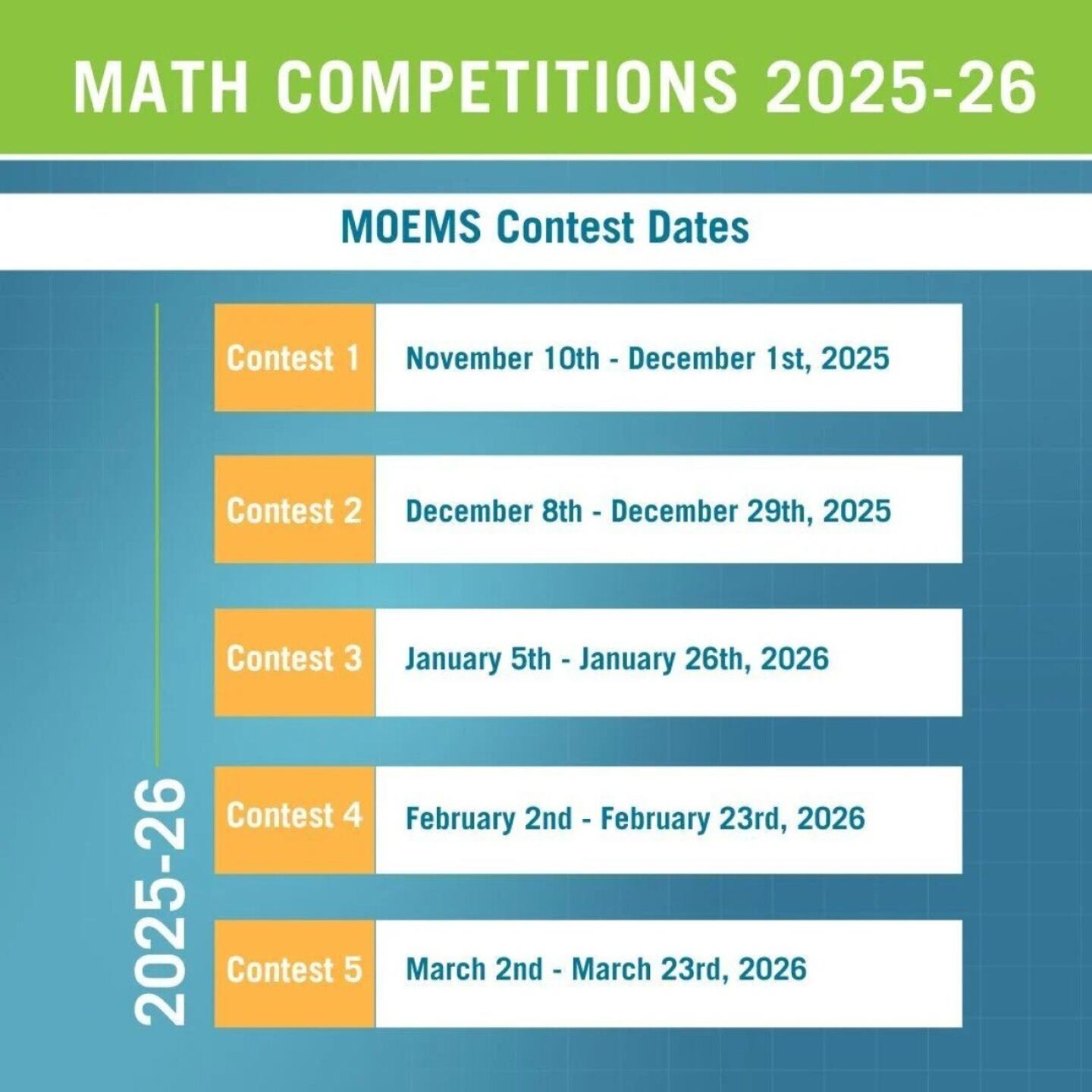 Adding up the top math competitions for students in 2025-26