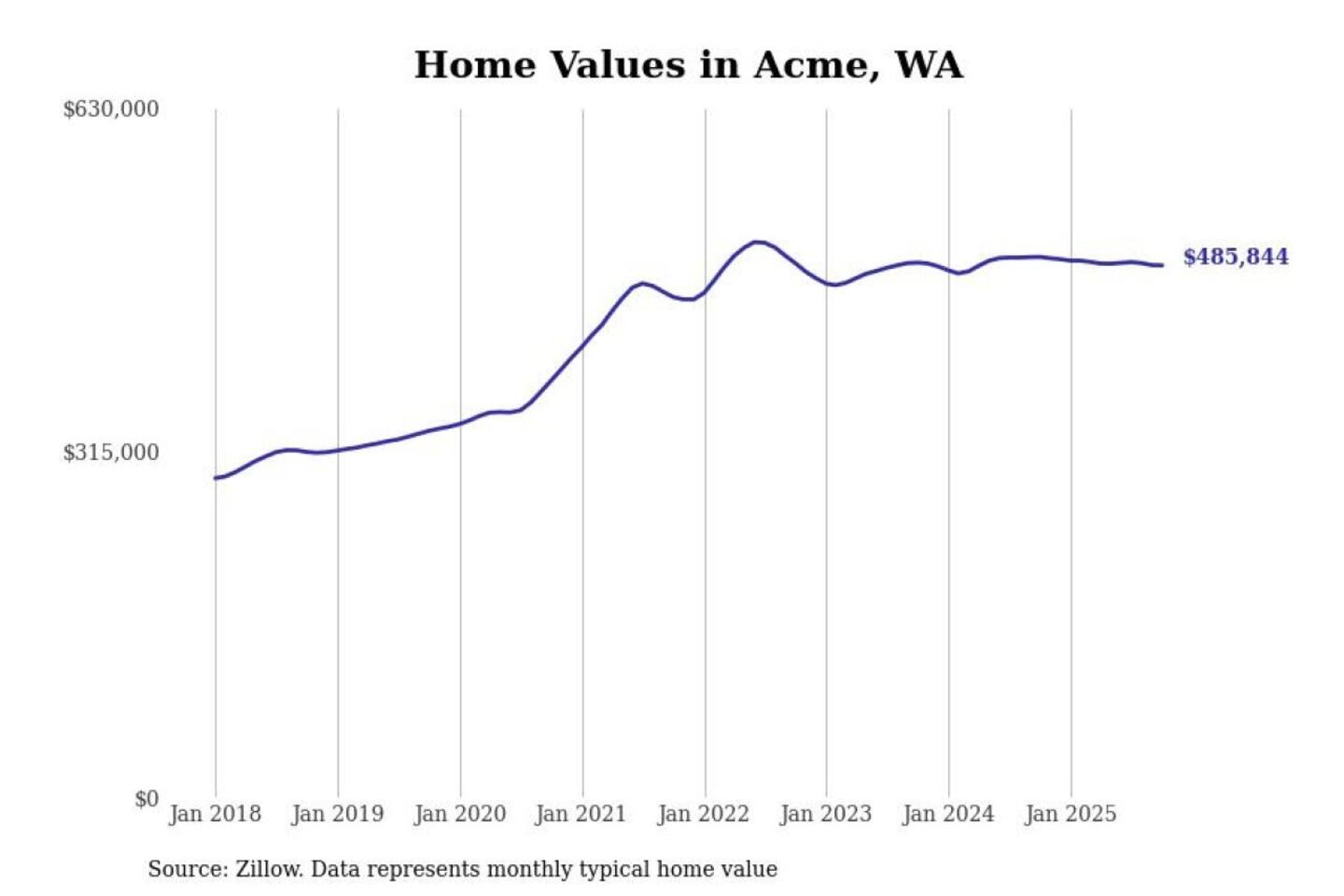 Stacker compiled a list of cities with the most expensive homes in the Bellingham, WA metro area using data from Zillow. Charts show the monthly typical home value since January 2018.