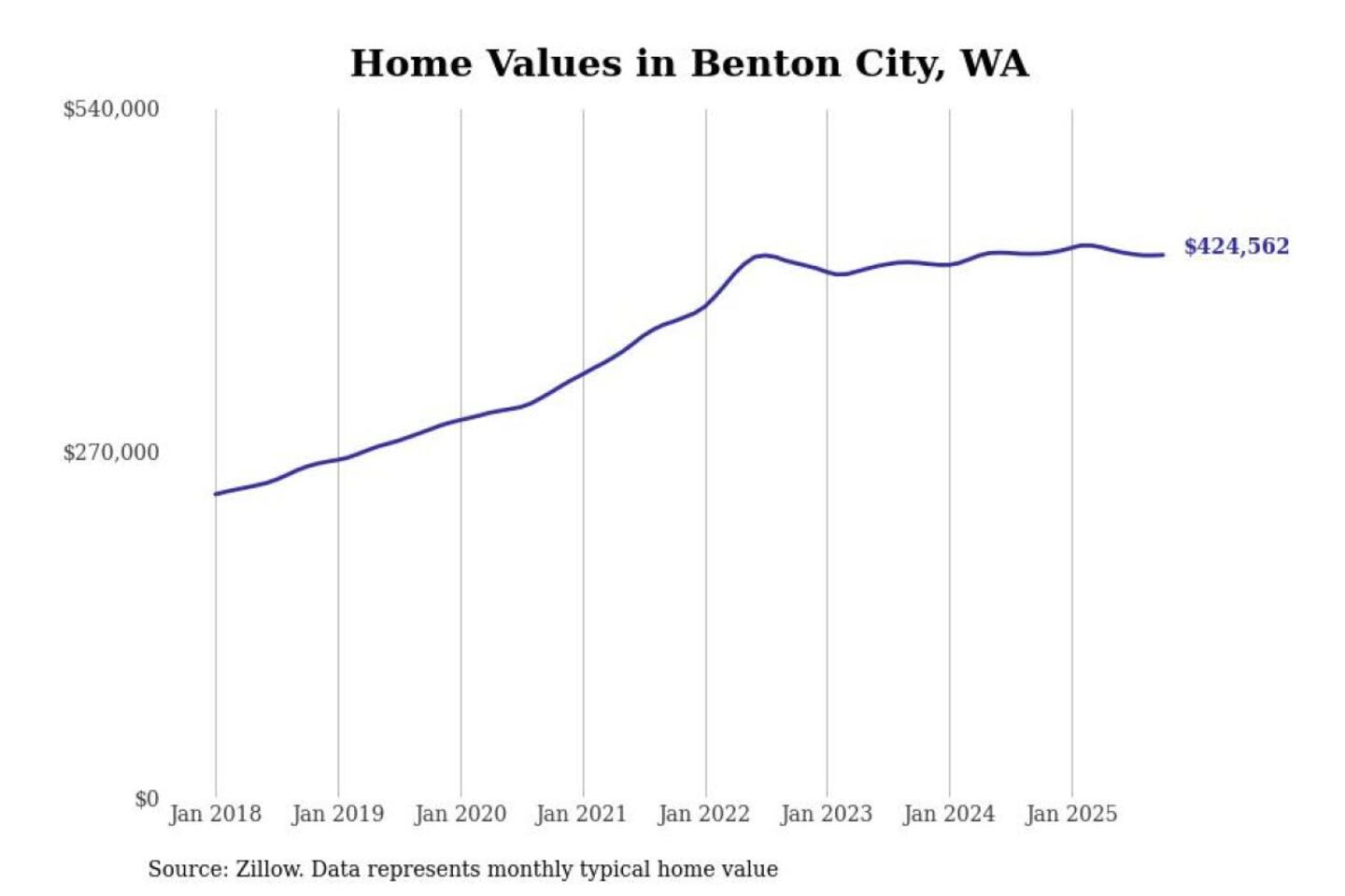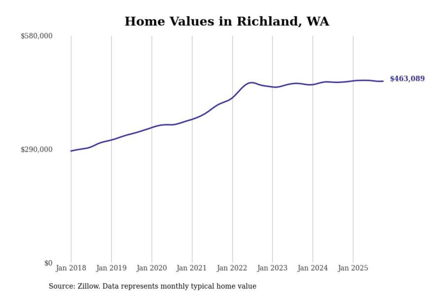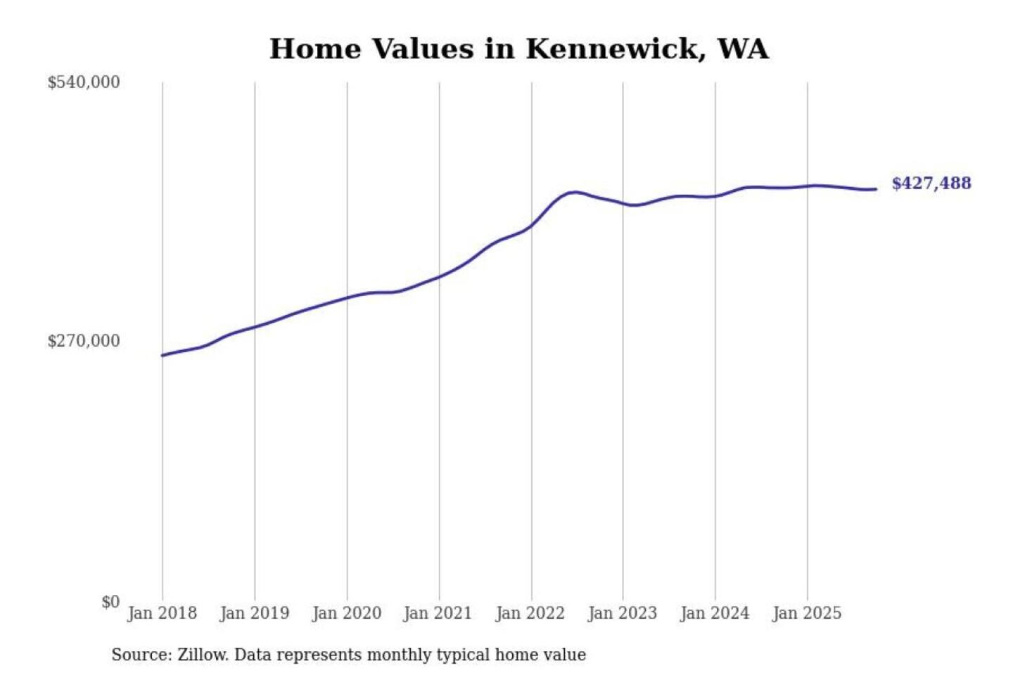 Stacker compiled a list of cities with the most expensive homes in the Kennewick-Richland, WA metro area using data from Zillow. Charts show the monthly typical home value since January 2018.