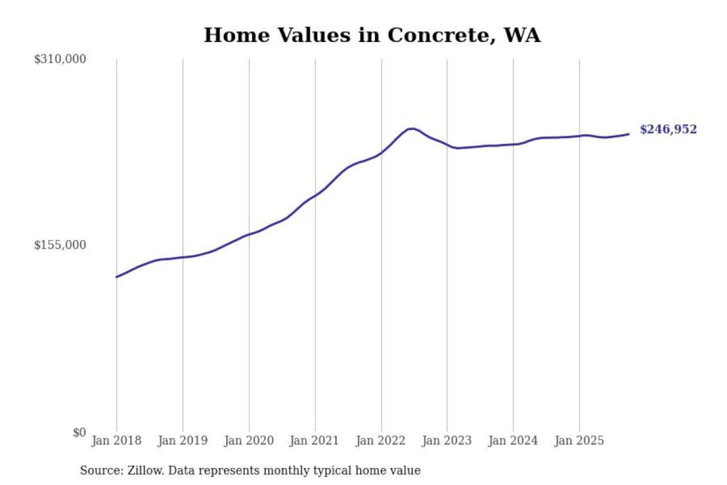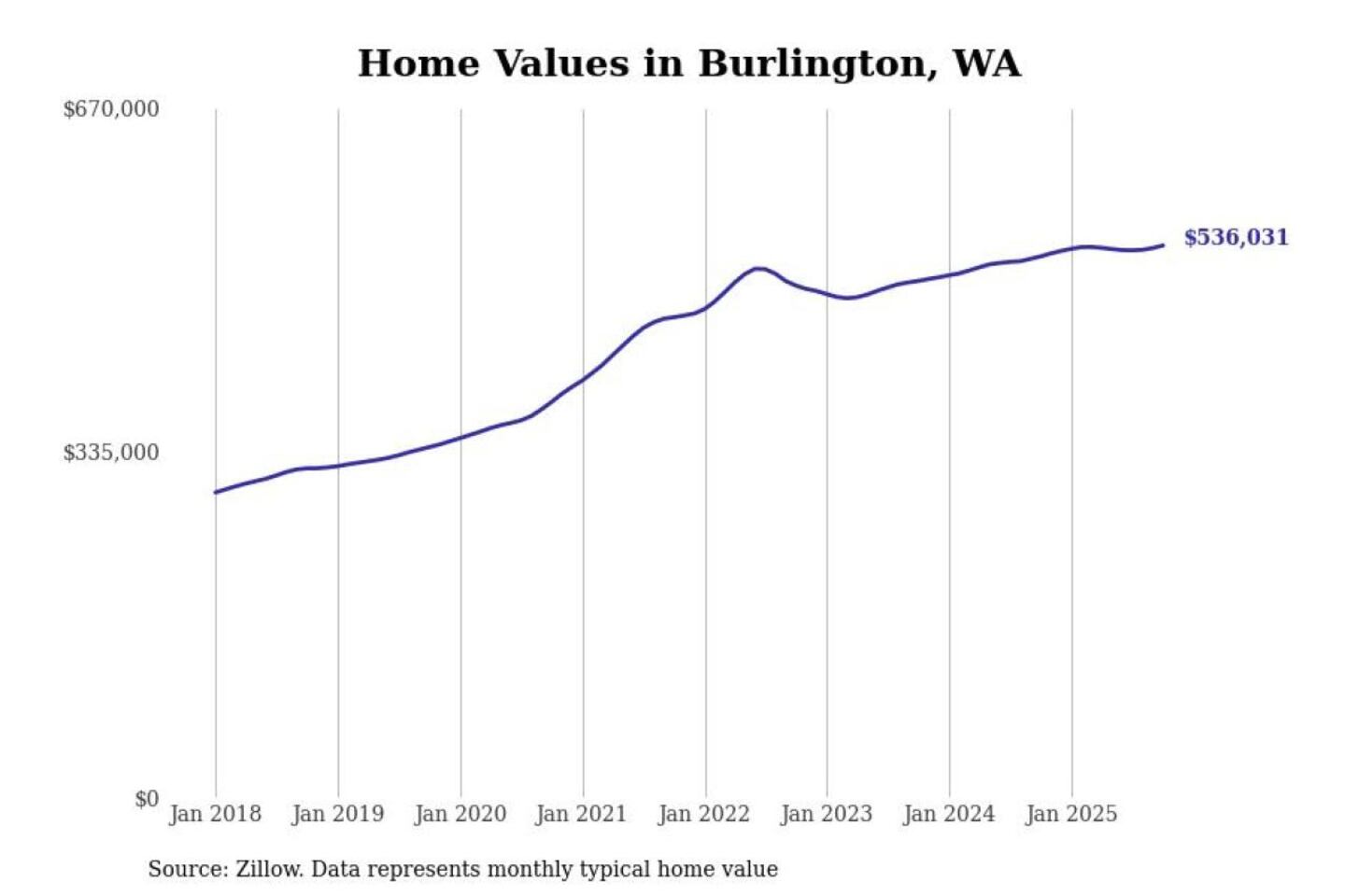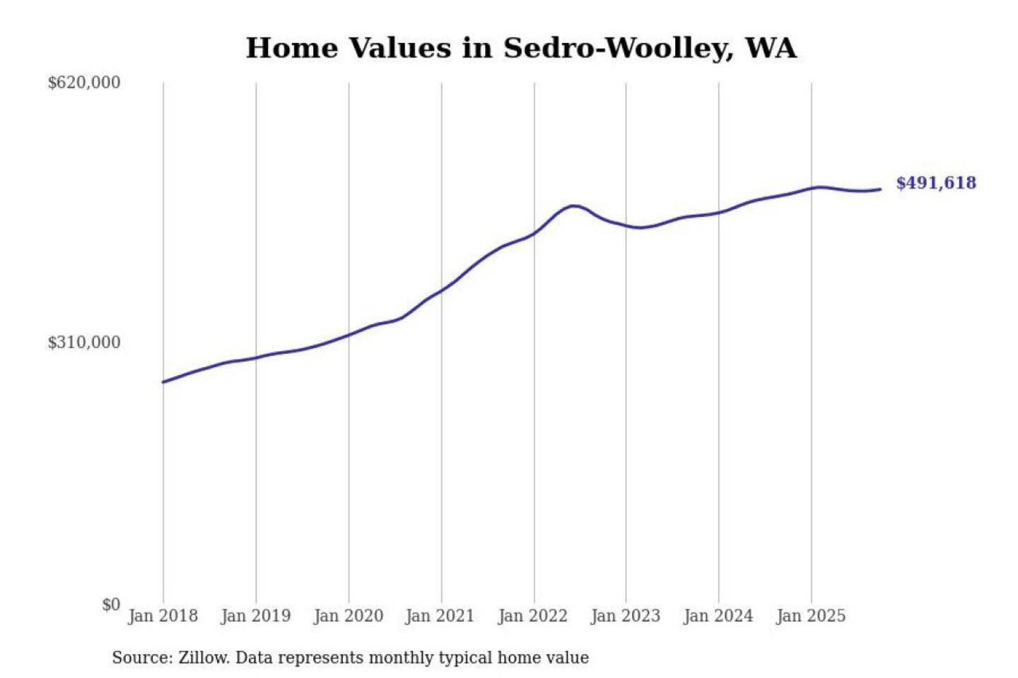 Stacker compiled a list of cities with the most expensive homes in the Mount Vernon-Anacortes, WA metro area using data from Zillow. Charts show the monthly typical home value since January 2018.