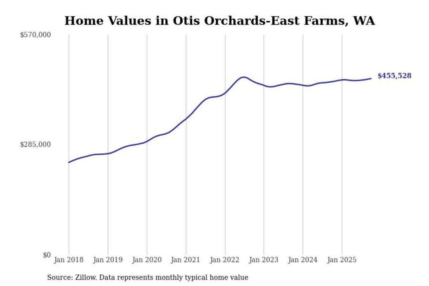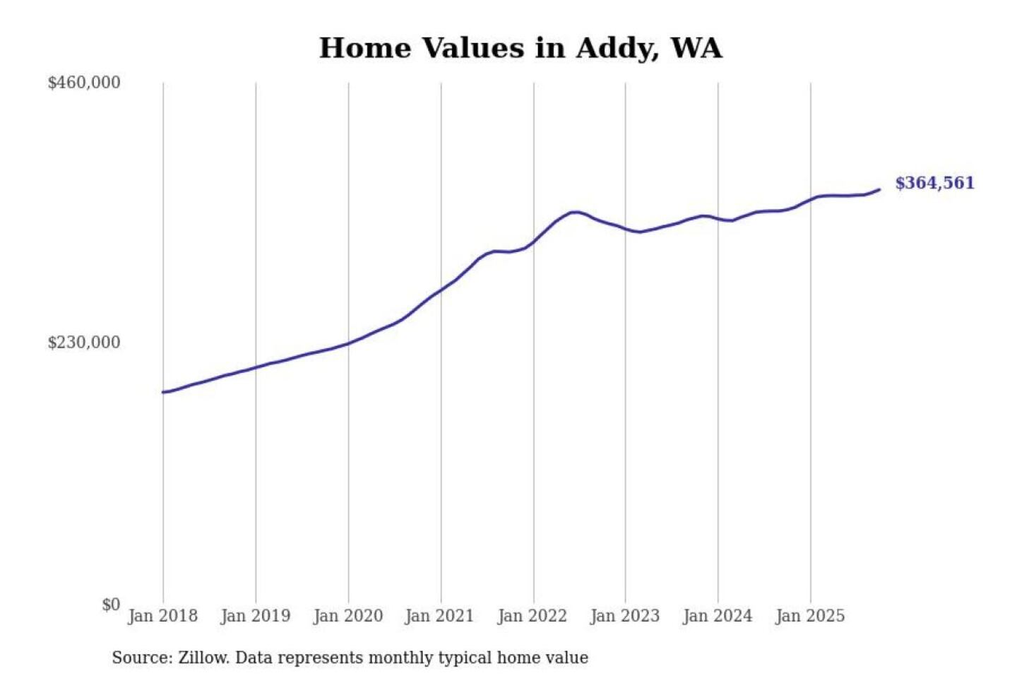 Stacker compiled a list of cities with the most expensive homes in the Spokane-Spokane Valley, WA metro area using data from Zillow. Charts show the monthly typical home value since January 2018.