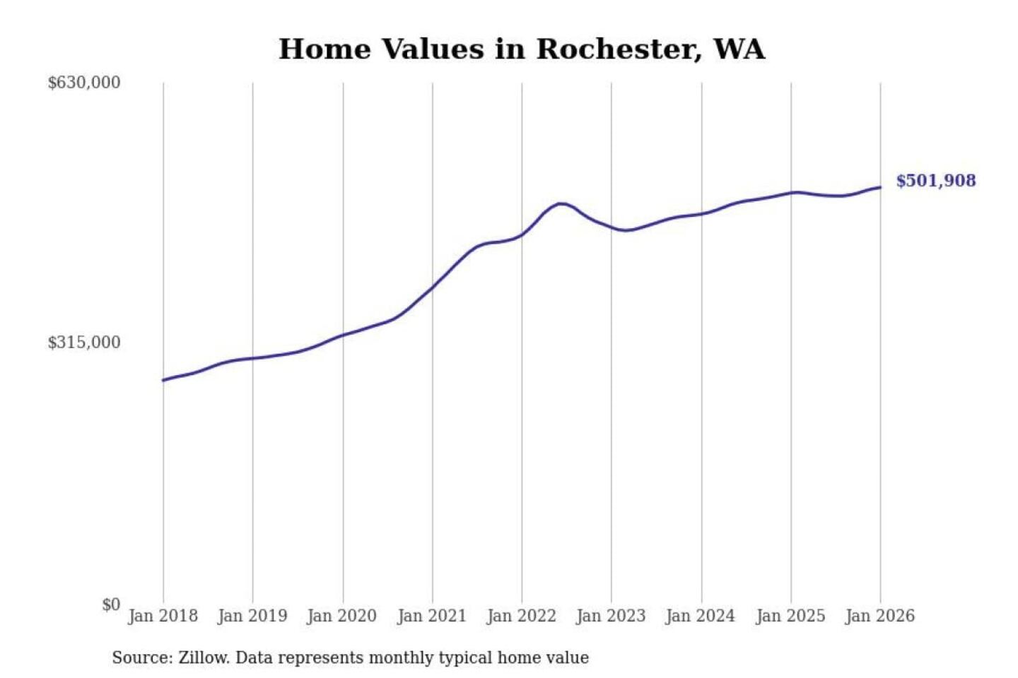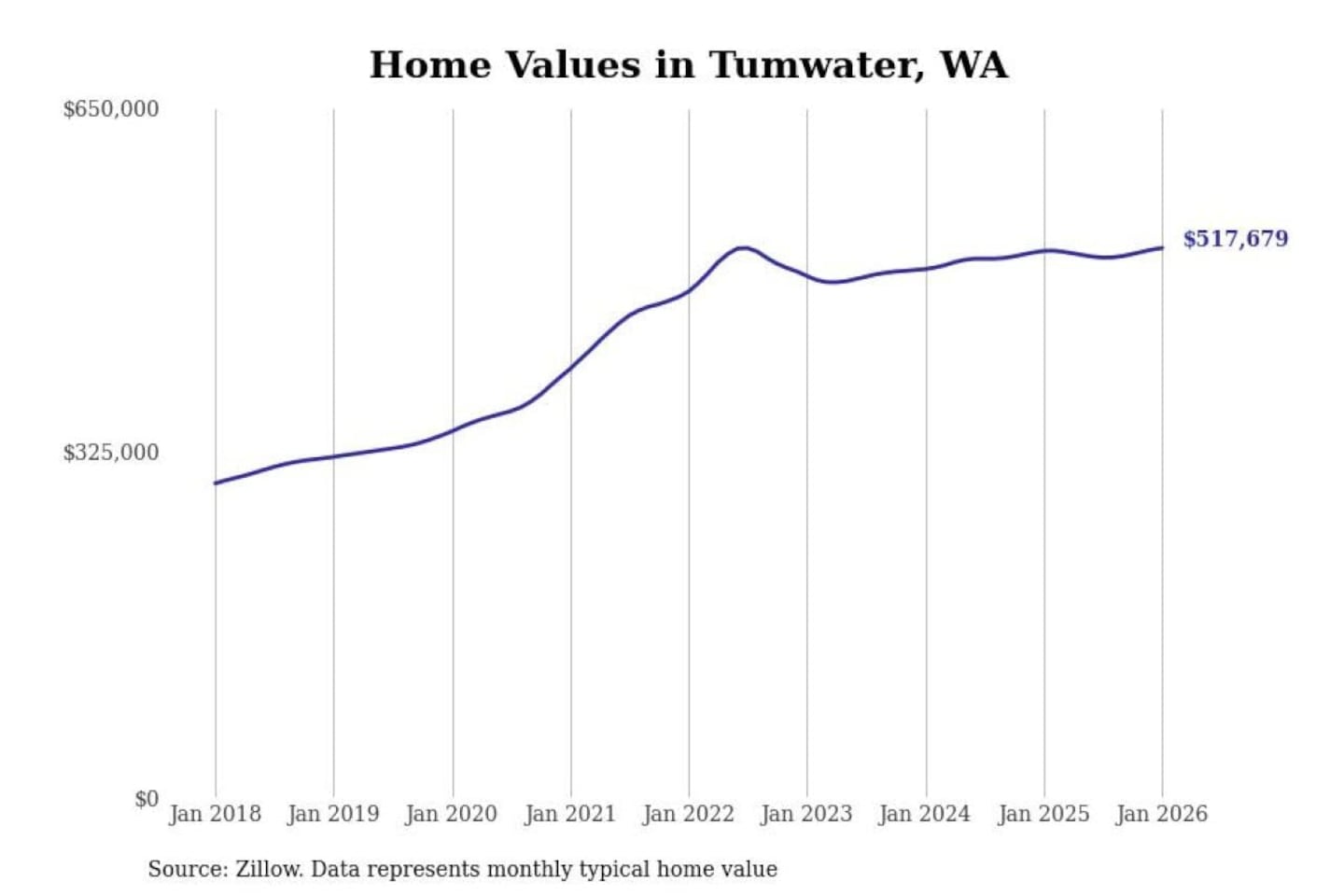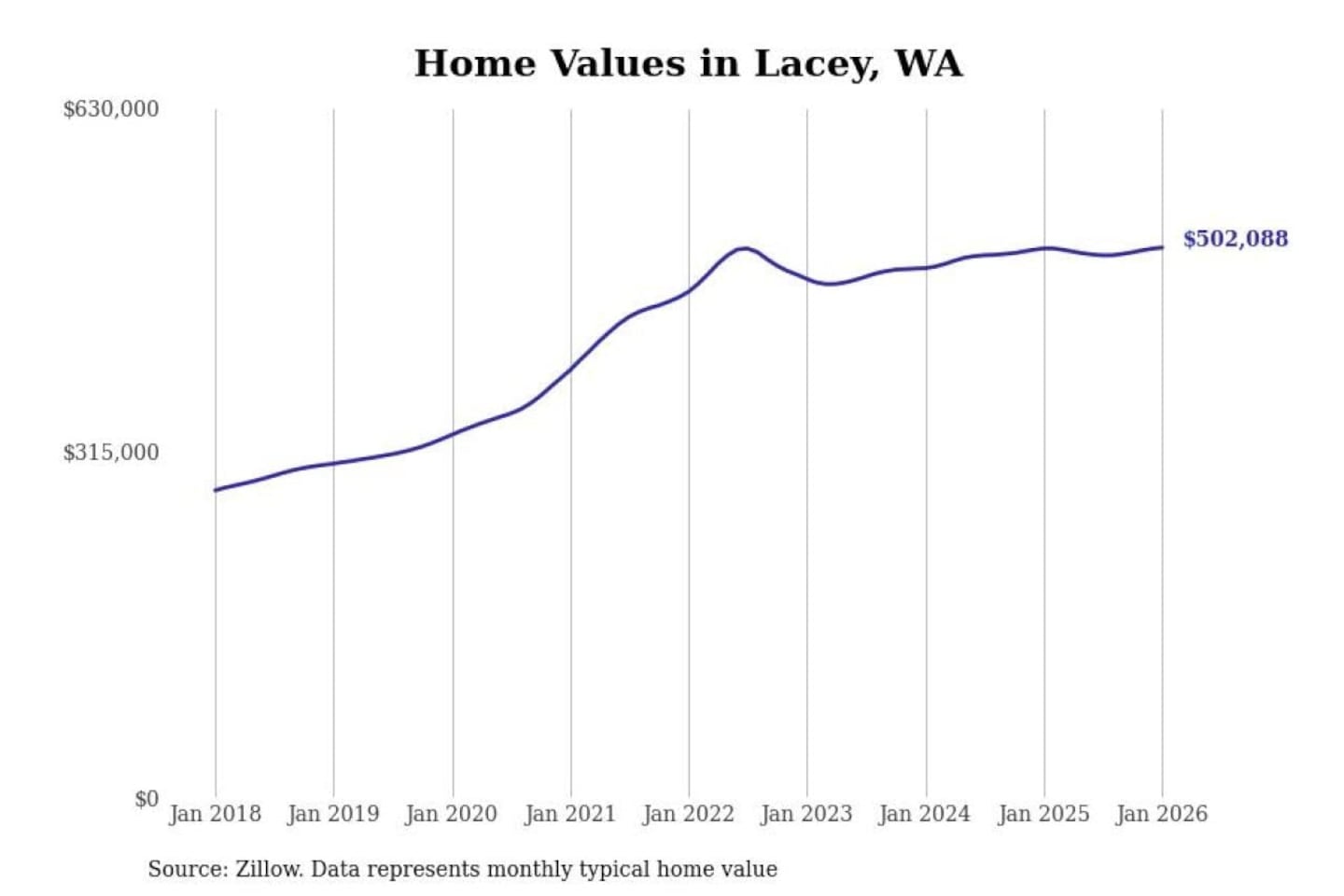 Stacker compiled a list of cities with the most expensive homes in the Olympia-Lacey-Tumwater, WA metro area using data from Zillow. Charts show the monthly typical home value since January 2018.