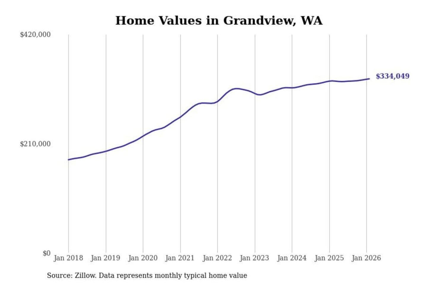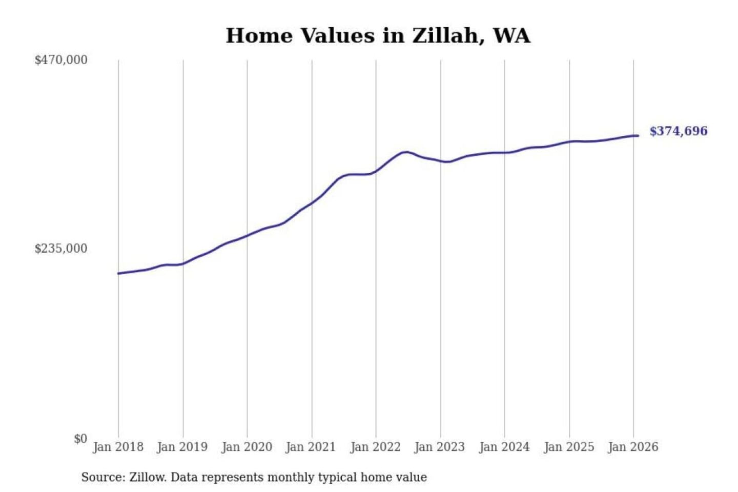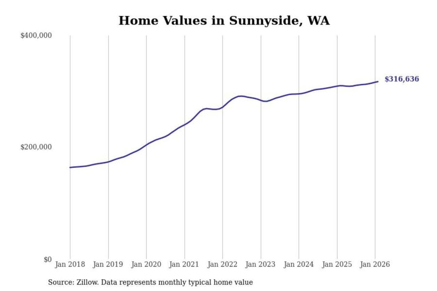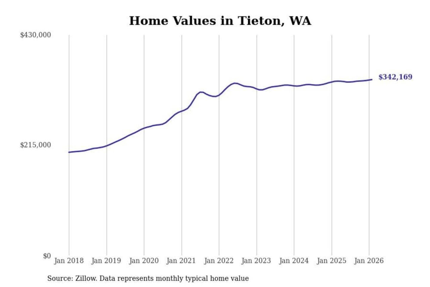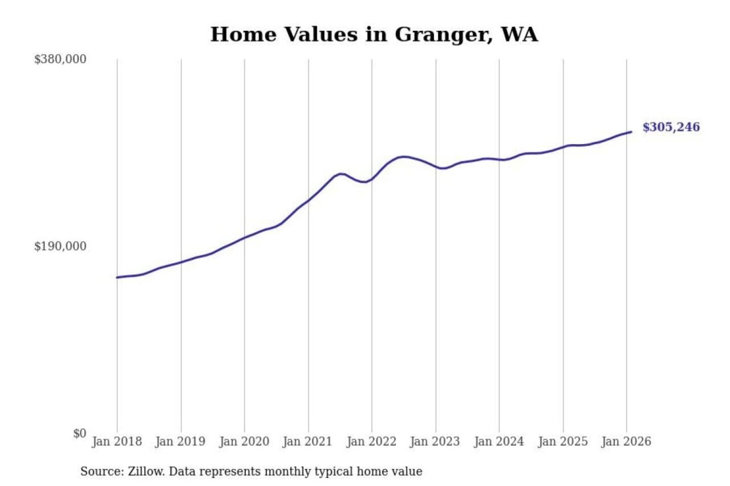 Stacker compiled a list of cities with the most expensive homes in the Yakima, WA metro area using data from Zillow. Charts show the monthly typical home value since January 2018.