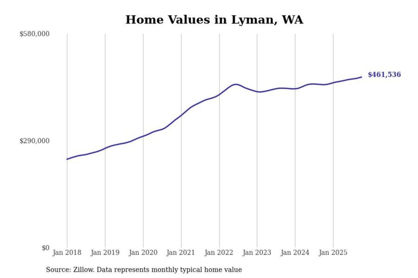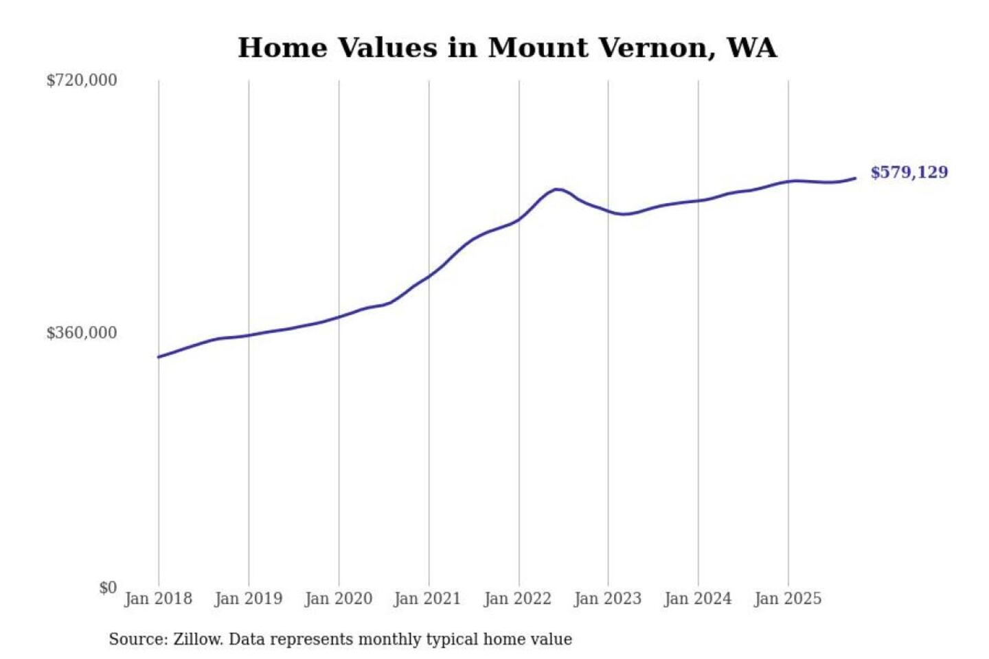Stacker compiled a list of cities with the most expensive homes in the Mount Vernon metro area using data from Zillow. Charts show the monthly typical home value since January 2018. All 9 cities and towns with data available were included in the list.