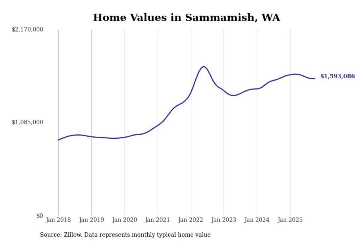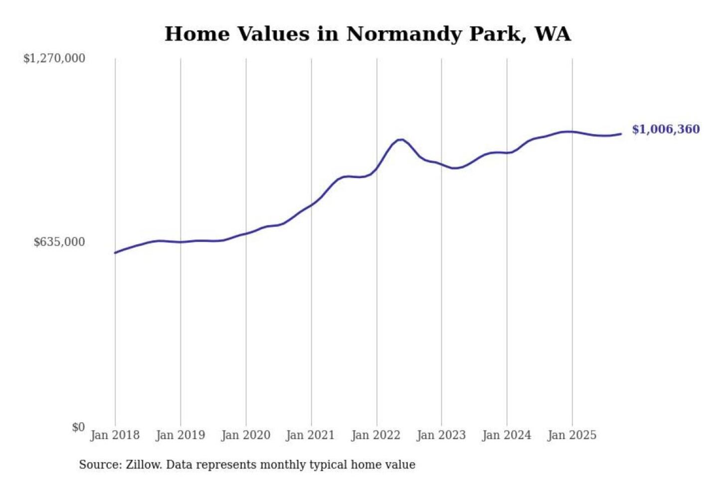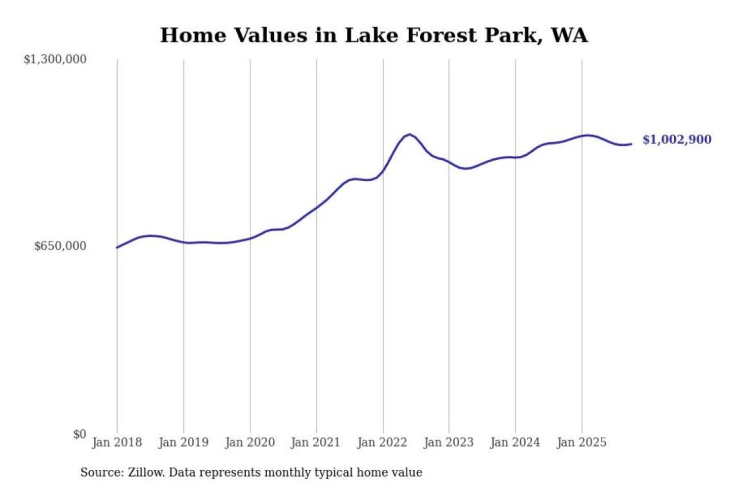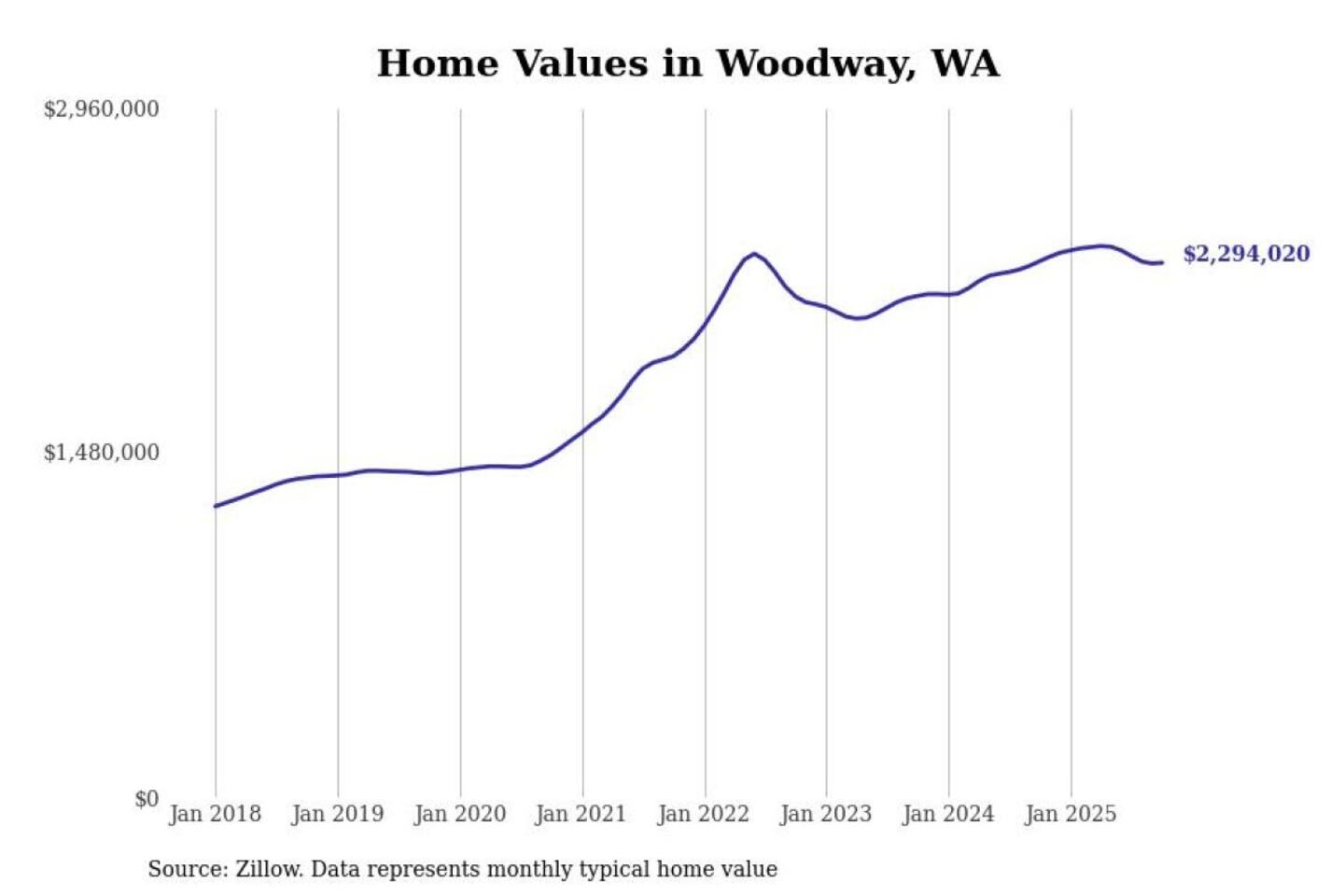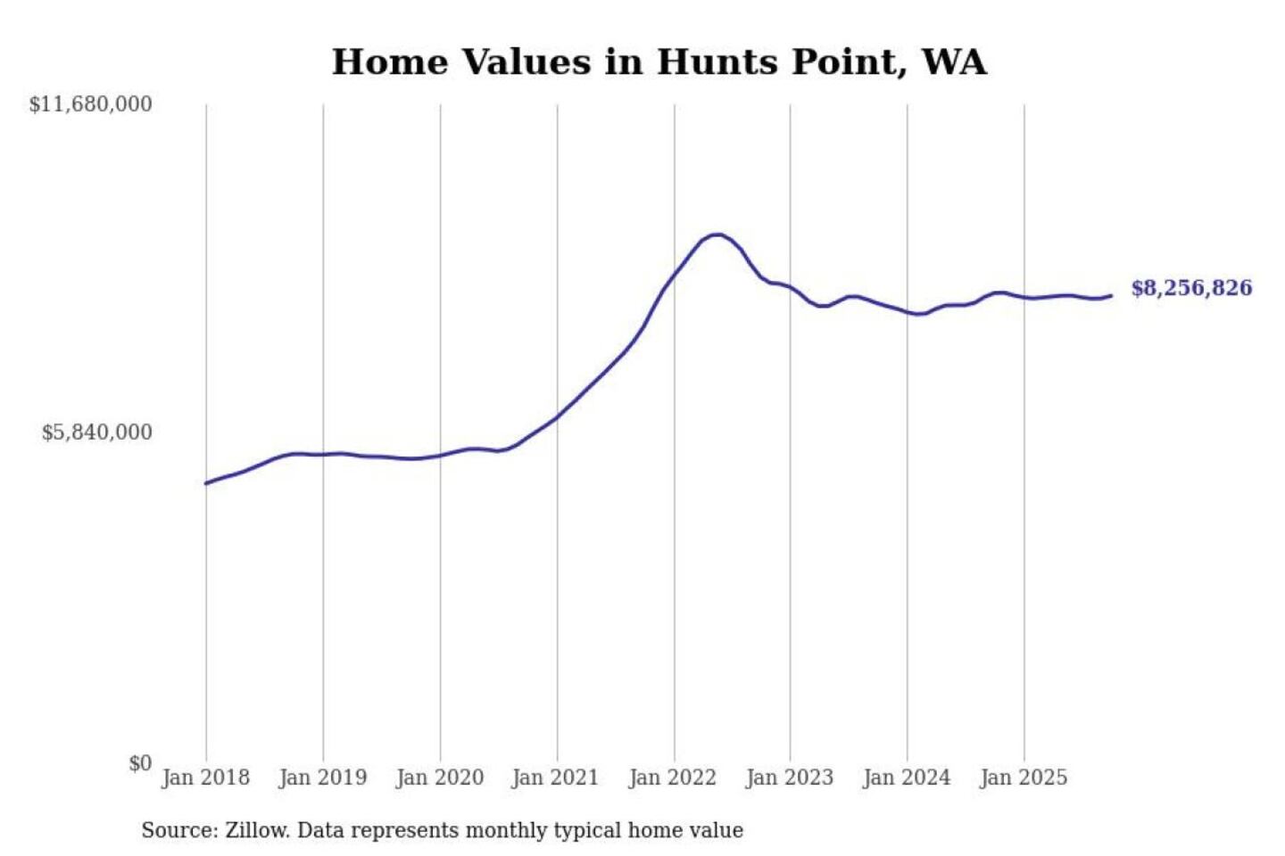 Stacker compiled a list of cities with the most expensive homes in the Seattle metro area using data from Zillow. Charts show the monthly typical home value since January 2018. Data was available for 96 cities and towns.