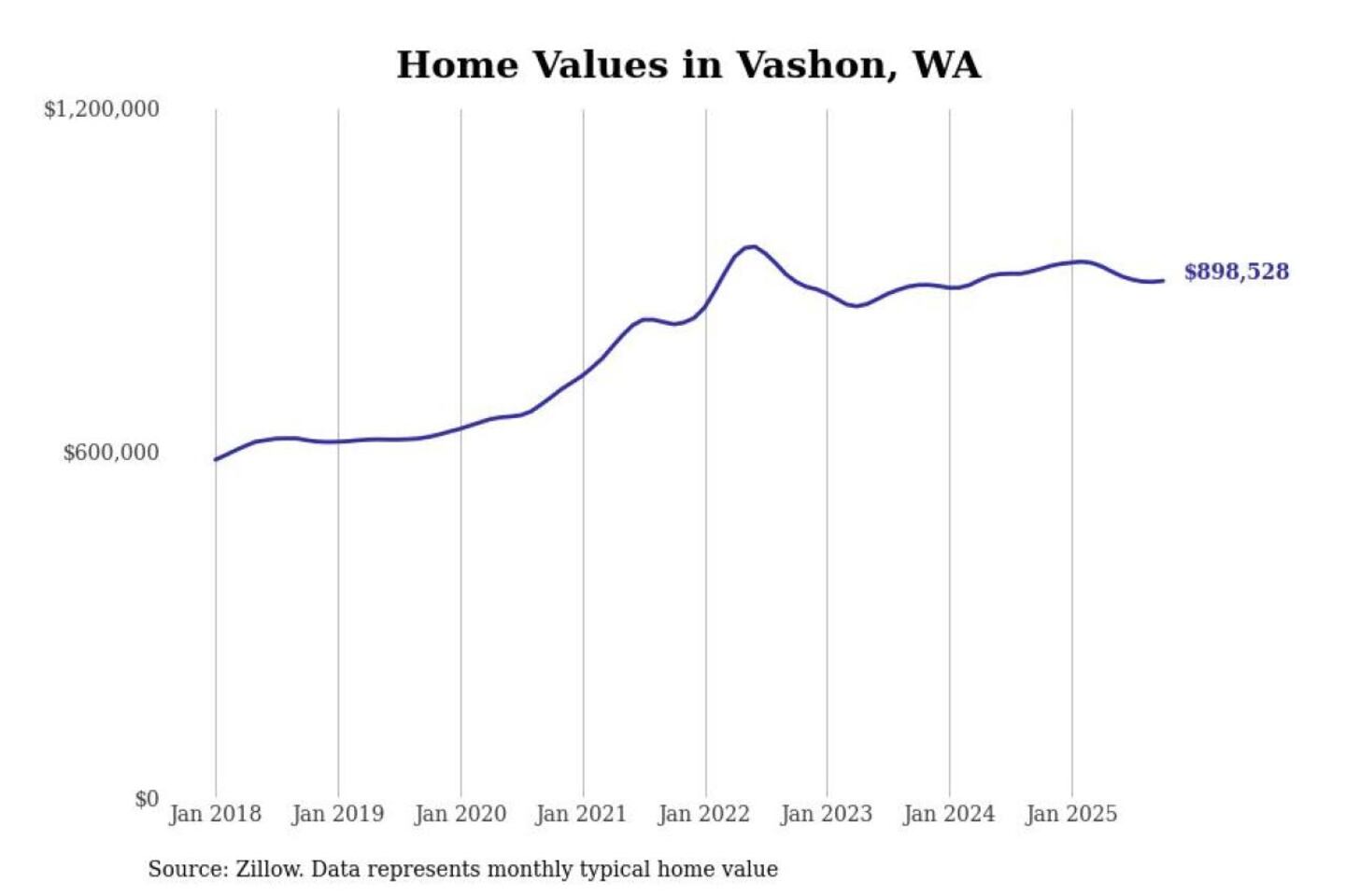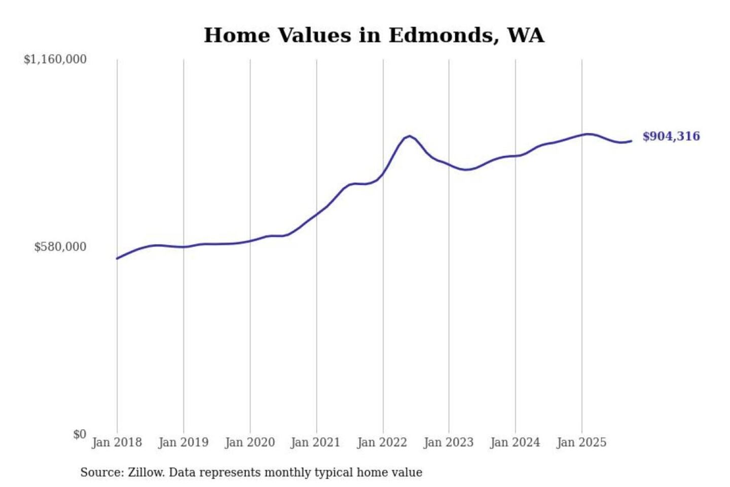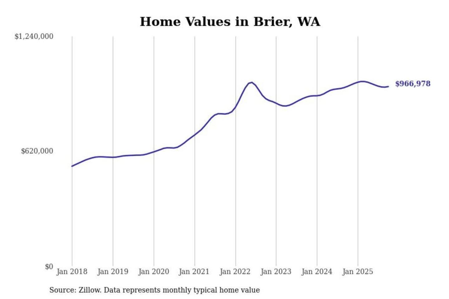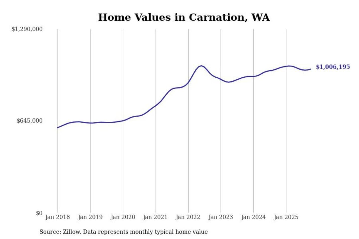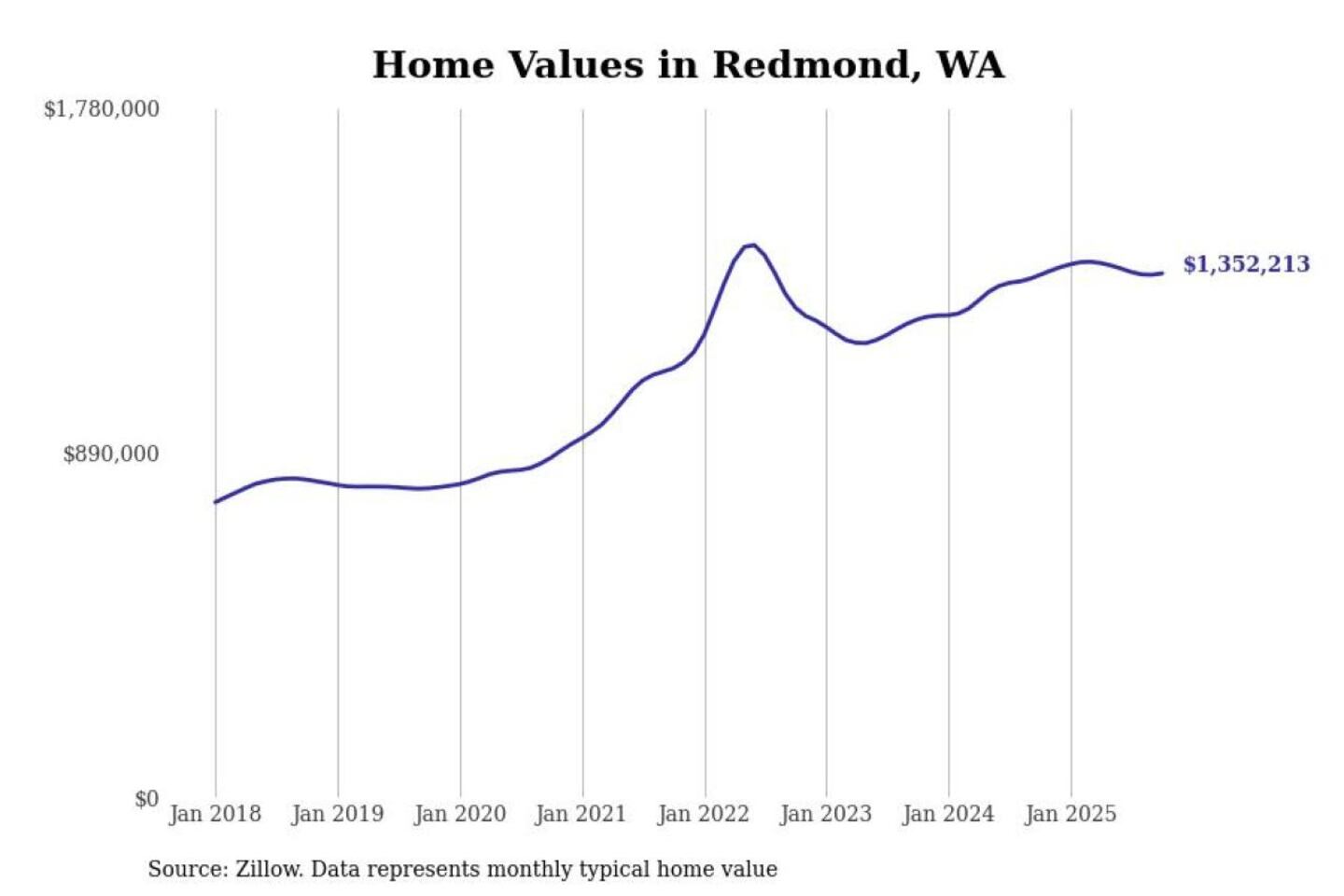 Stacker compiled a list of cities with the most expensive homes in the Seattle metro area using data from Zillow. Charts show the monthly typical home value since January 2018. Data was available for 96 cities and towns.