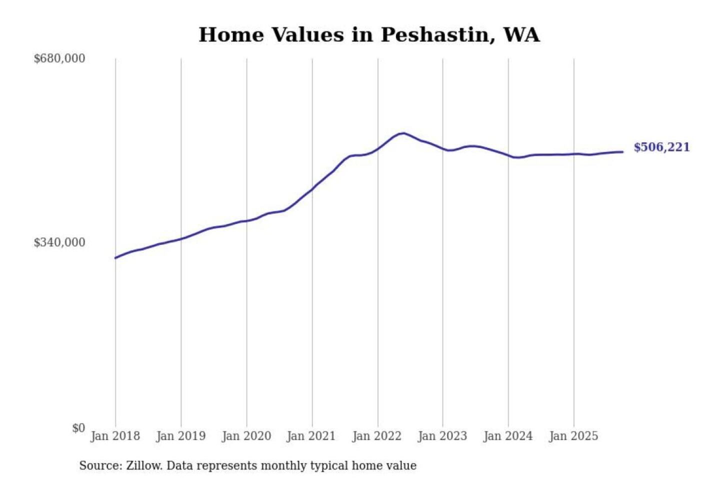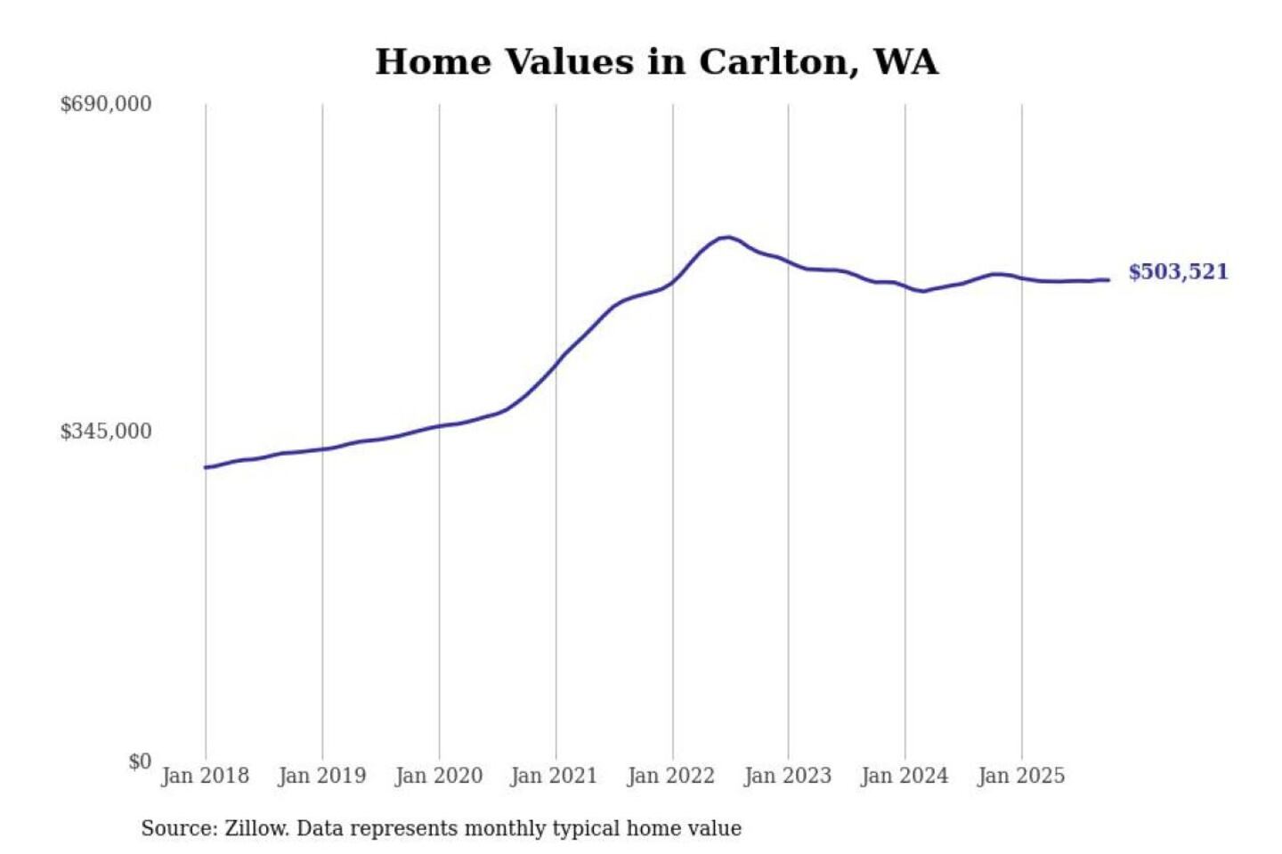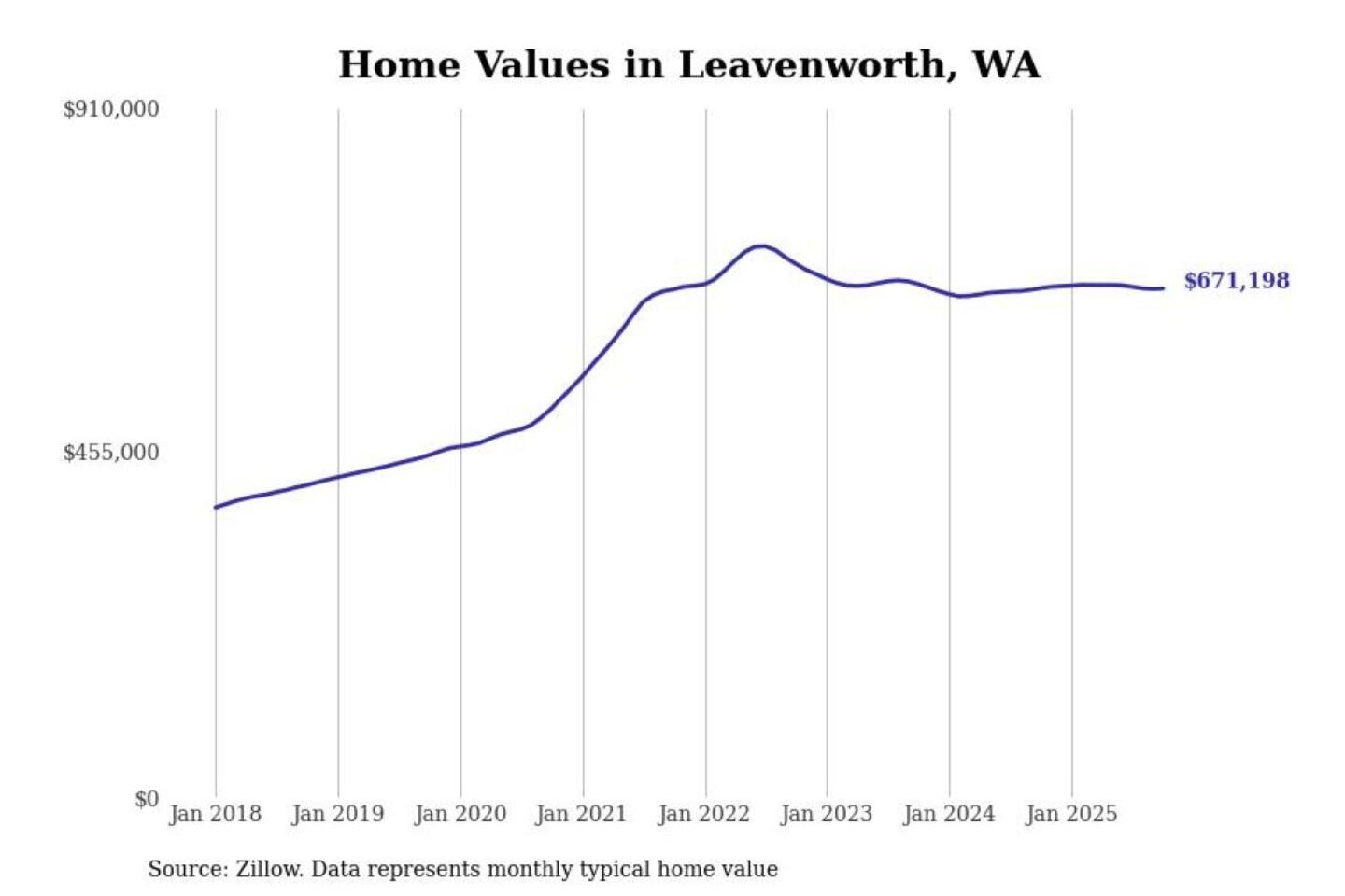 Stacker compiled a list of cities with the most expensive homes in the Wenatchee metro area using data from Zillow. Charts show the monthly typical home value since January 2018. All 20 cities and towns with data available were included in the list.