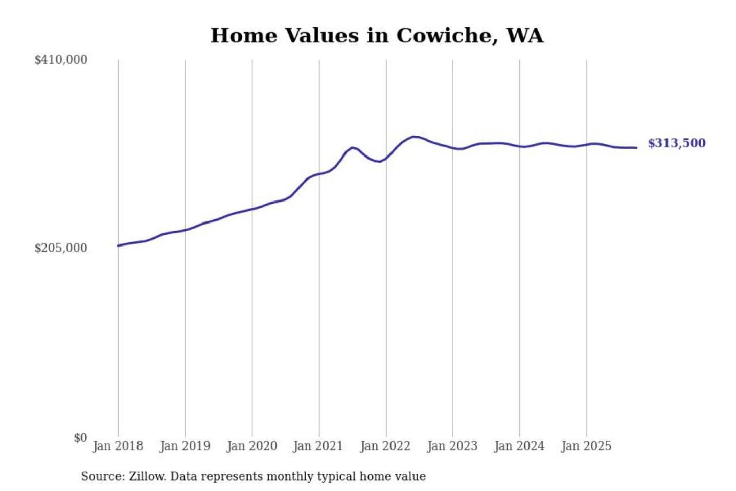 - Typical home value: $313,014