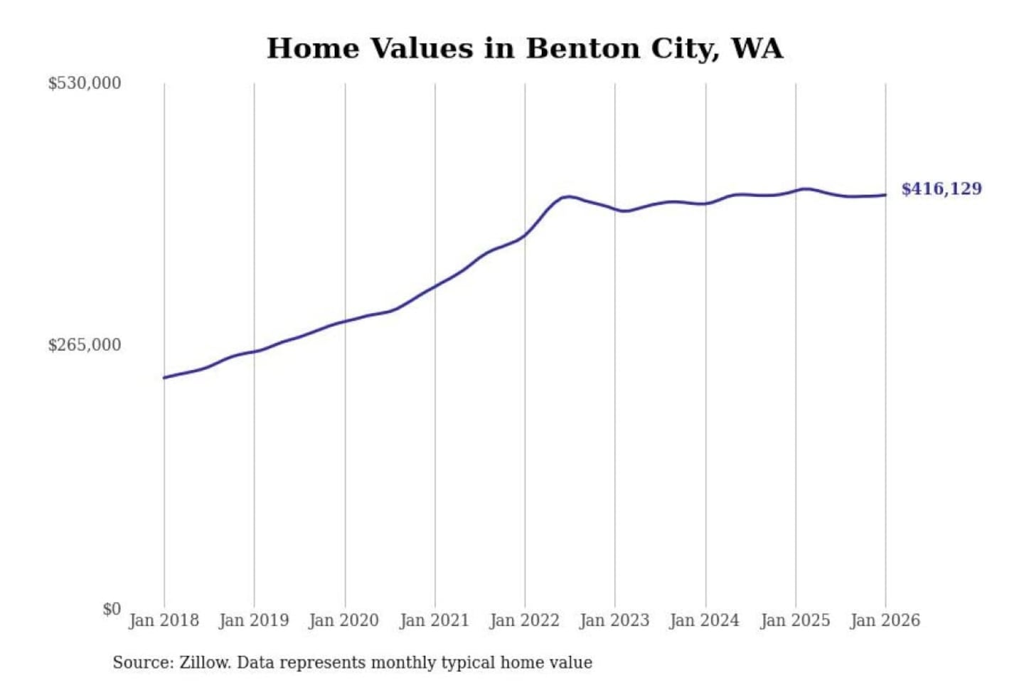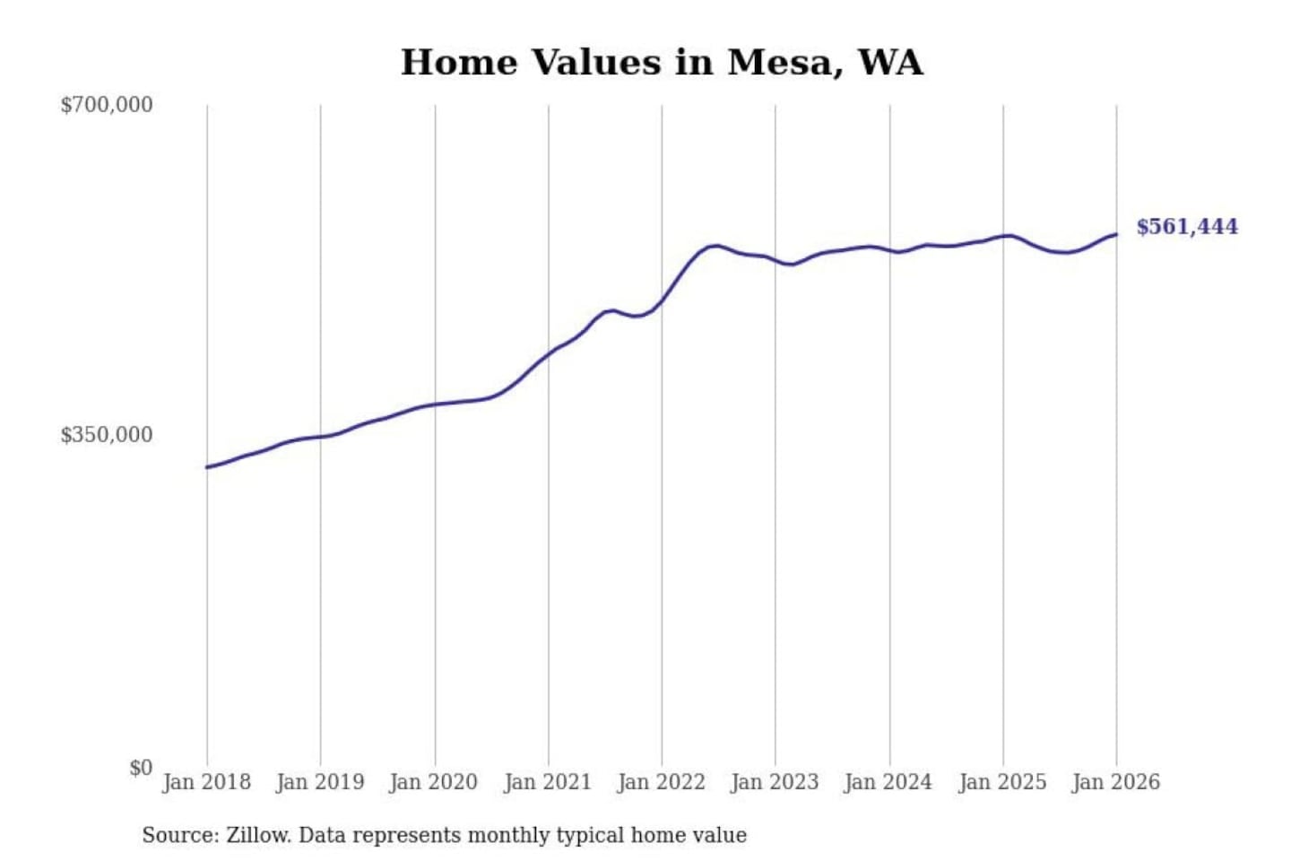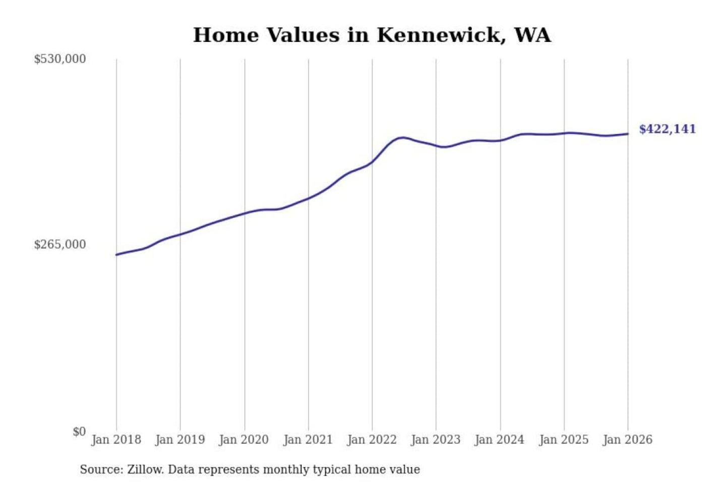 Stacker compiled a list of cities with the most expensive homes in the Kennewick metro area using data from Zillow. Charts show the monthly typical home value since January 2018. All 9 cities and towns with data available were included in the list.