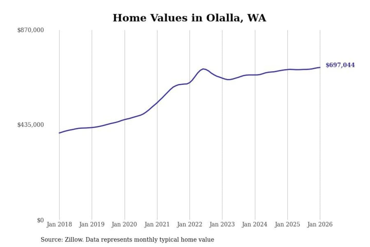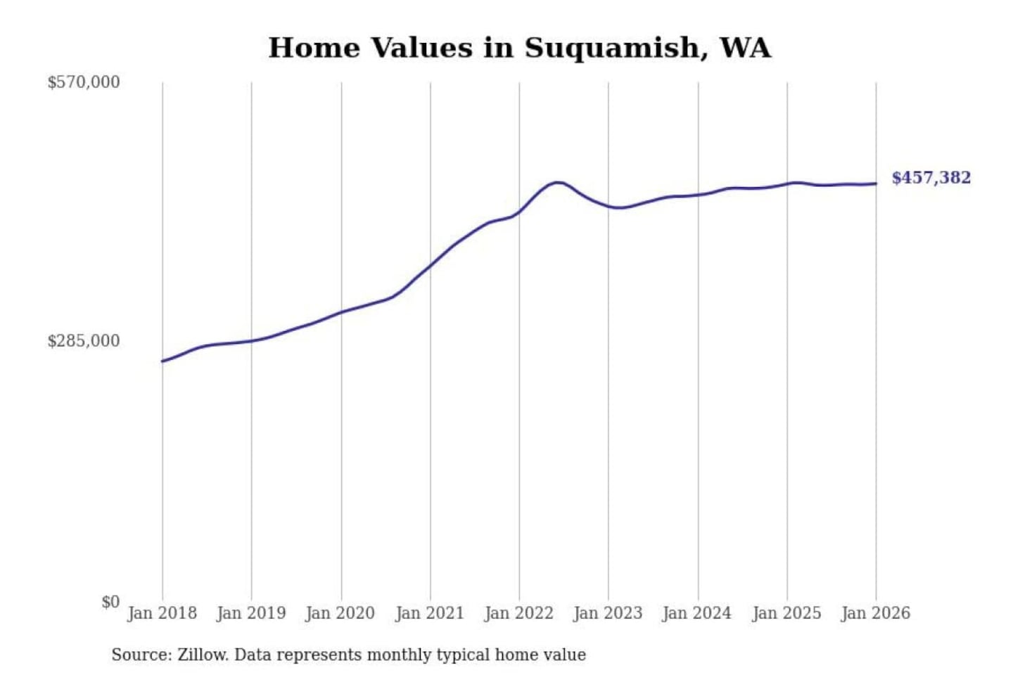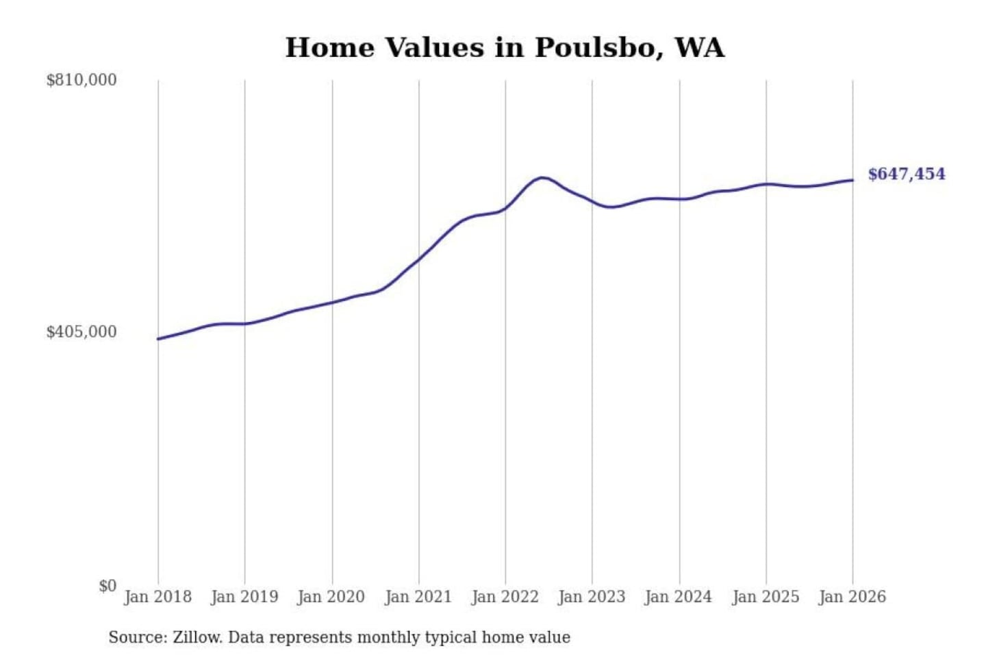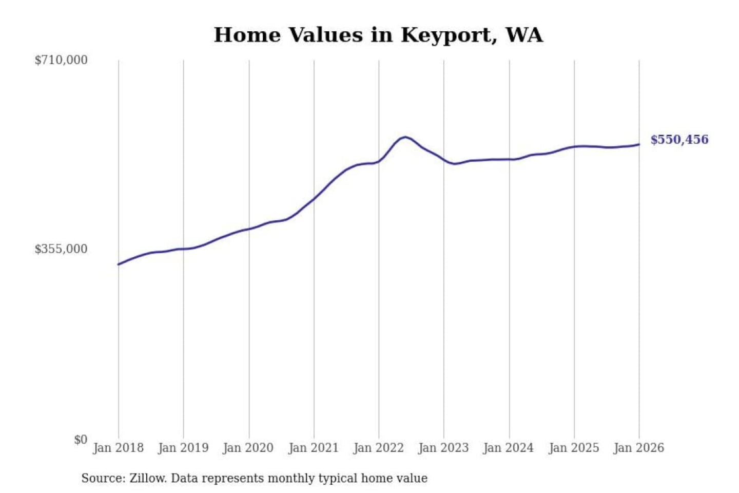 Stacker compiled a list of cities with the most expensive homes in the Bremerton metro area using data from Zillow. Charts show the monthly typical home value since January 2018. All 12 cities and towns with data available were included in the list.
