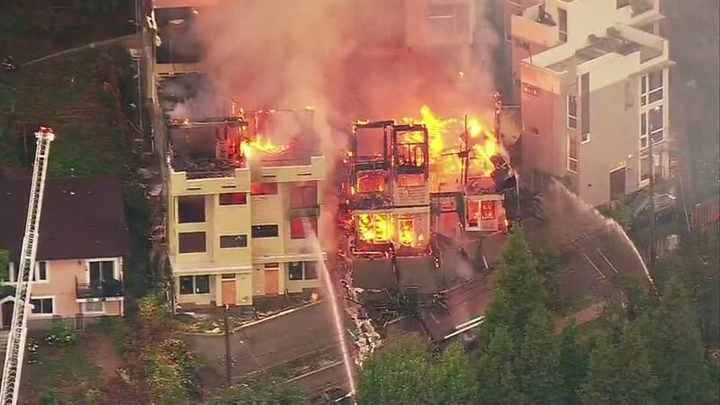 Seattle fire said the fire alarm center received a call about a fire at a new construction site at 5:42 a.m.