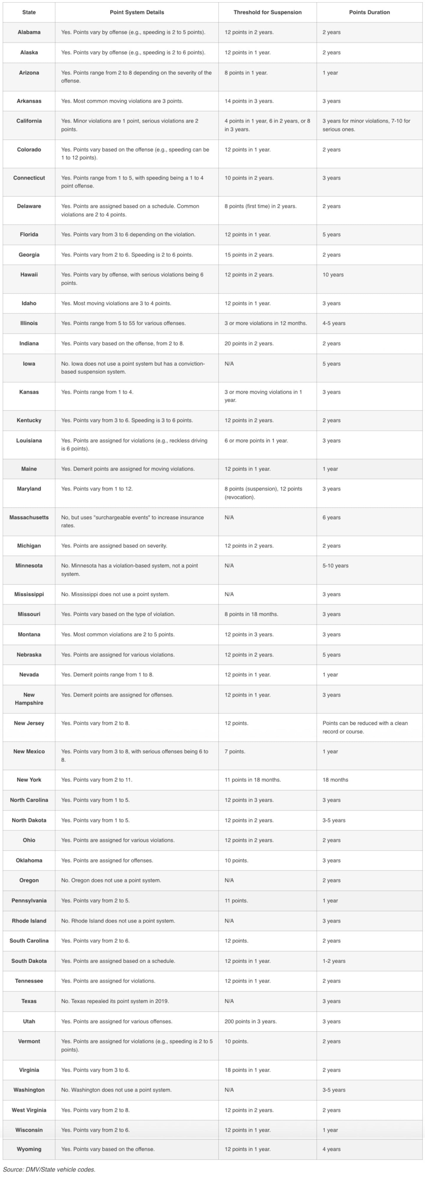 An up-to-date overview of the points system in all 50 states.