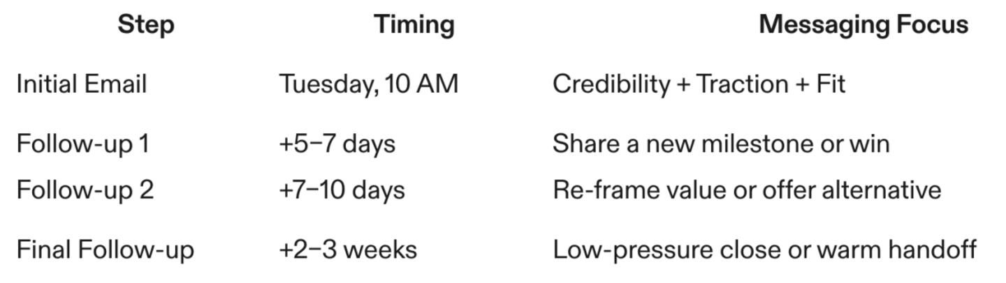 Founders don’t respond to sales emails. They respond to signals of relevance, credibility, and momentum.