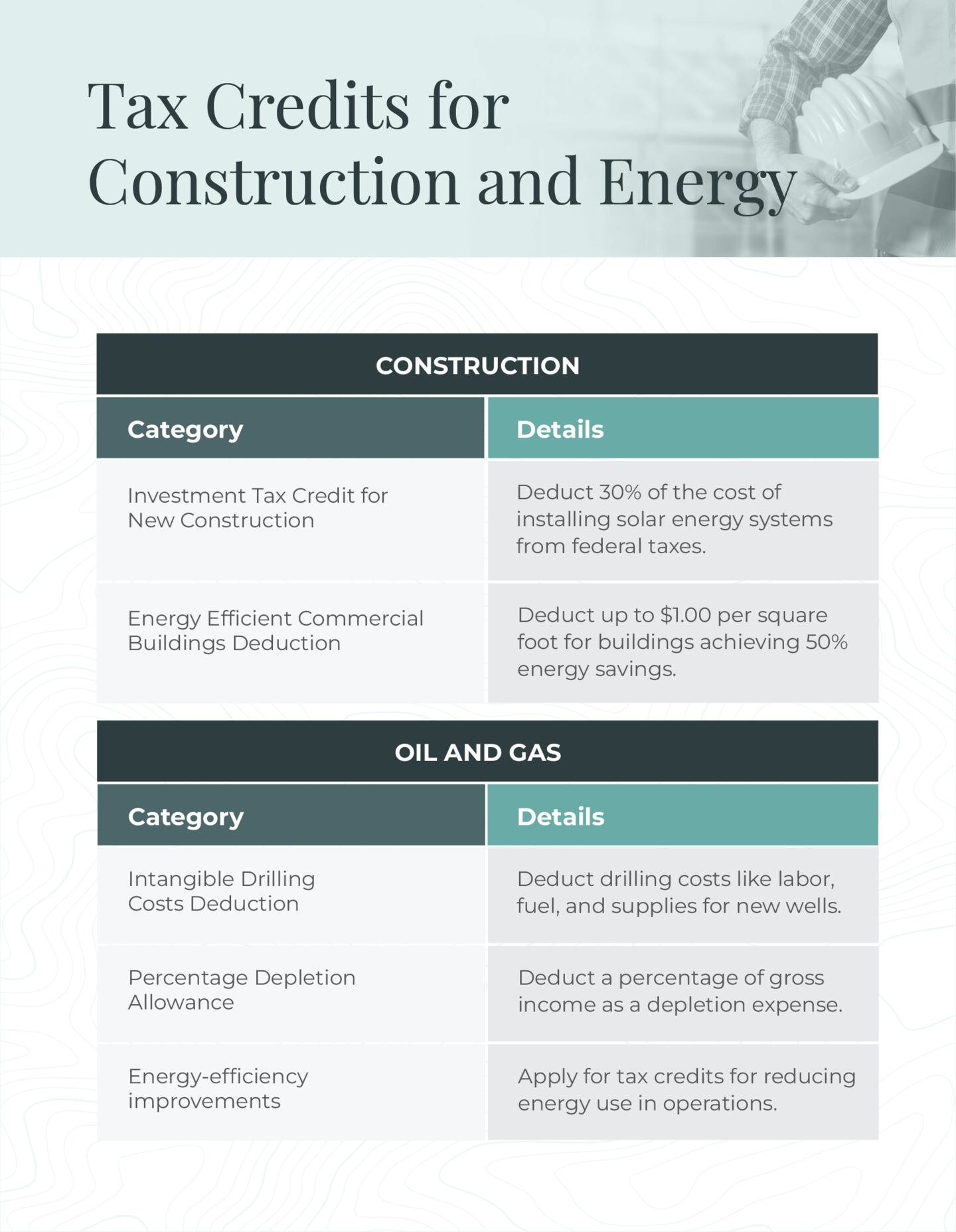 If you're a business owner in energy or construction, there are specific tax credits and deductions you should know about in 2025. If you meet the criteria, you could be eligible for multiple business deductions and considerable tax savings over the year.