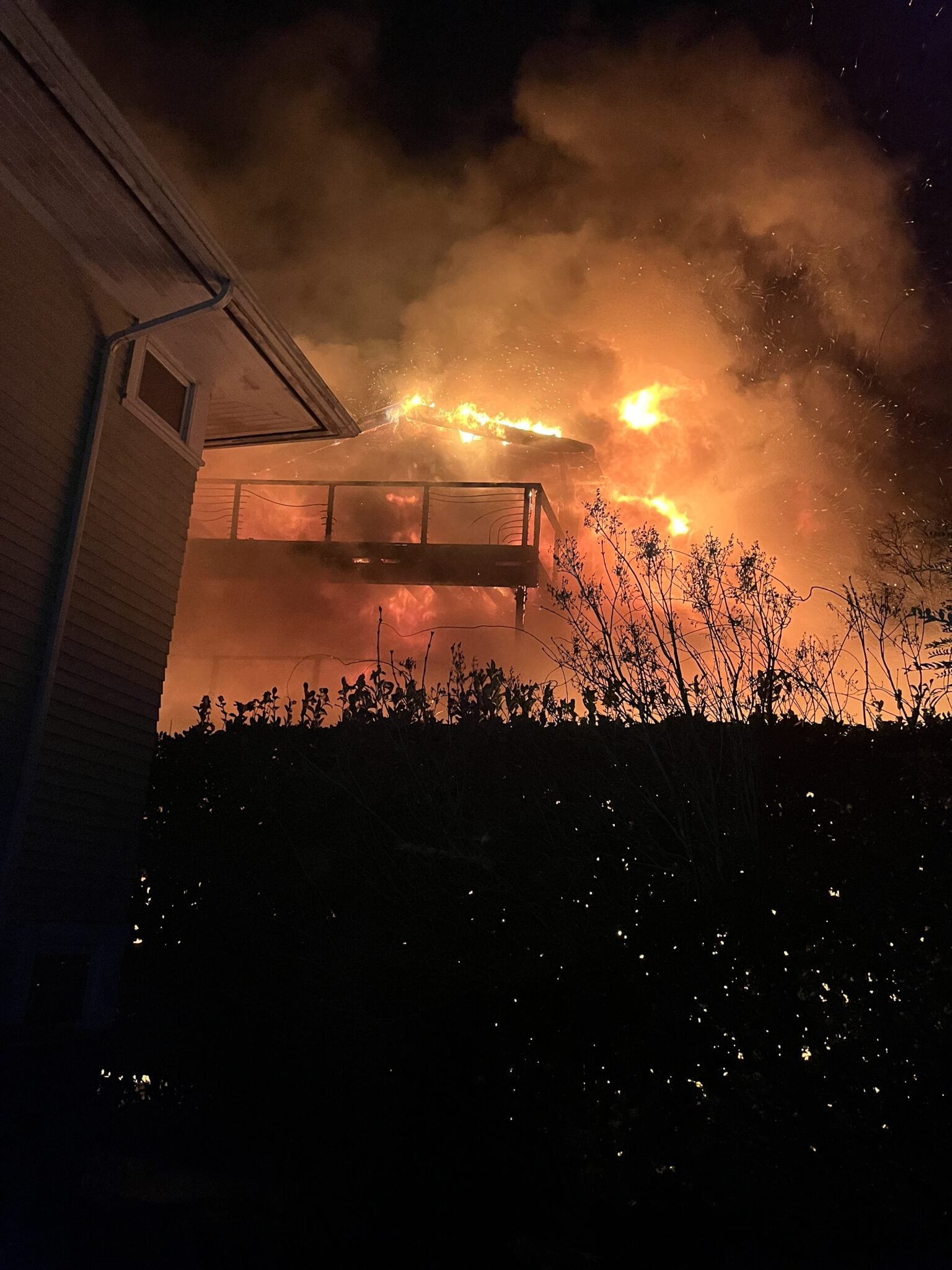 The first crews on scene saw large flames at the rear of the house that had spread into the first floor and a carport on the south side of the building.