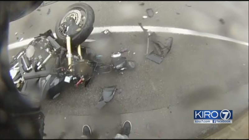 SEATTLE — A Seattle motorcyclist's helmet-cam video of his violent crash on I-5 went viral soon after he posted it on YouTube.