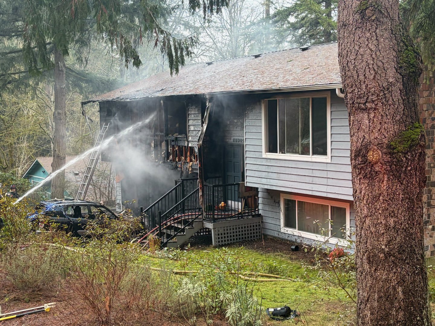 Eastside Fire & Rescue crews were able to save a dog from a house fire in Woodinville earlier Saturday.