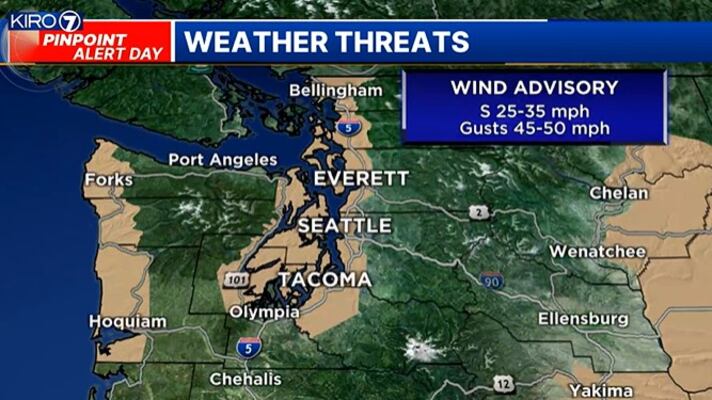 SEATTLE — Another atmospheric river is moving over the area Wednesday with widespread rain that will become increasingly heavy. It’s already breezy to windy and will become stronger later today. Plus, we have a lot of snow falling in the mountains now with plenty more on the way.