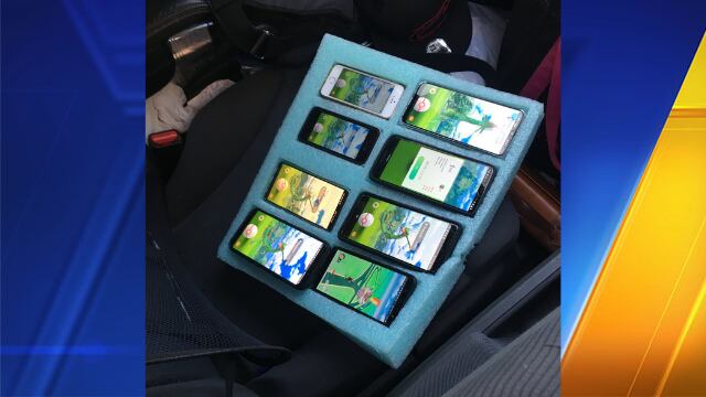 A driver was contacted by State Patrol after he was found playing Pokemon Go on eight phones Tuesday evening.