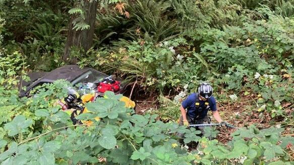 Eastside Fire & Rescue says crews responded Tuesday to a high-angle rescue after a vehicle went off an embankment at West Snoqualmie Valley Road Northeast and Northeast Novelty Hill Road.