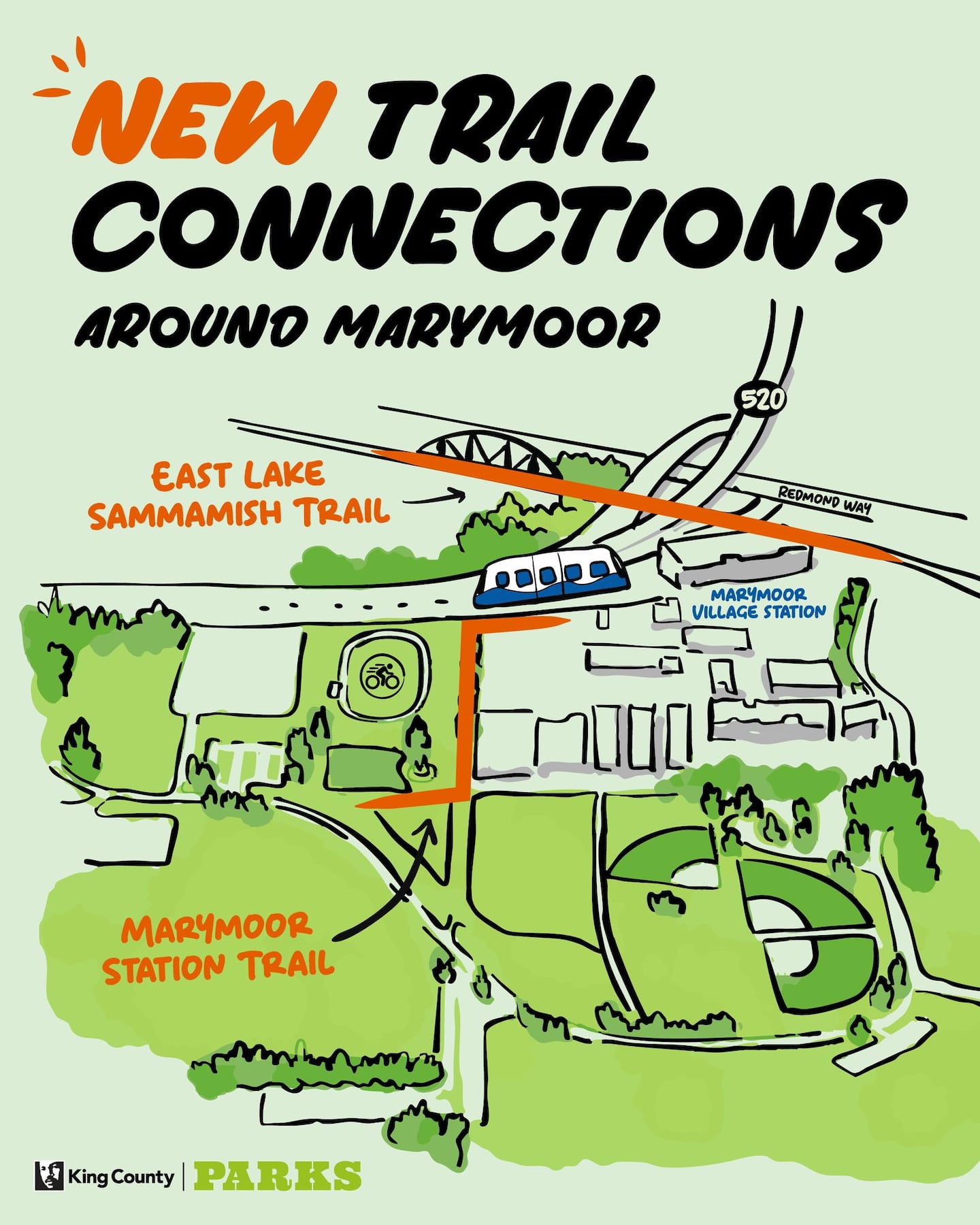 REDMOND, Wash. — King County Parks has opened two new trails in Redmond that connects to Sound Transit’s new Marymoor Village Station, opening soon.
