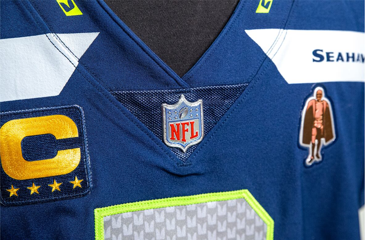 From Shaun Alexander’s Pacific Blue jersey to Russell Wilson’s College Navy helmet, each piece reflects the team’s evolution.