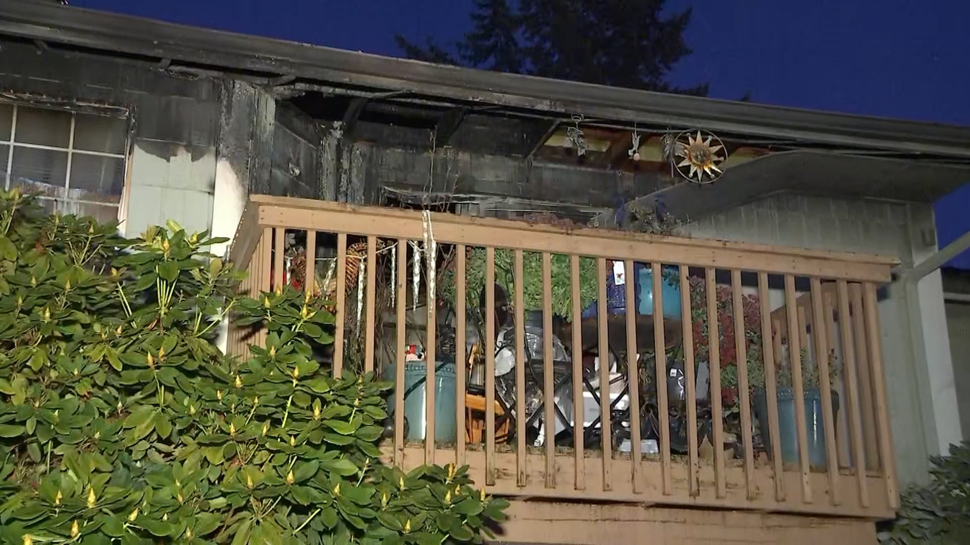 The flames from the burning chair then spread to the deck and the roof of the unit.
