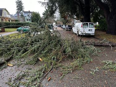 Trees down in West Seattle West Seattle resident Bill Schrier shared these photos of a tree down amid gusty winds and rain-saturated ground. (Bill Schrier)