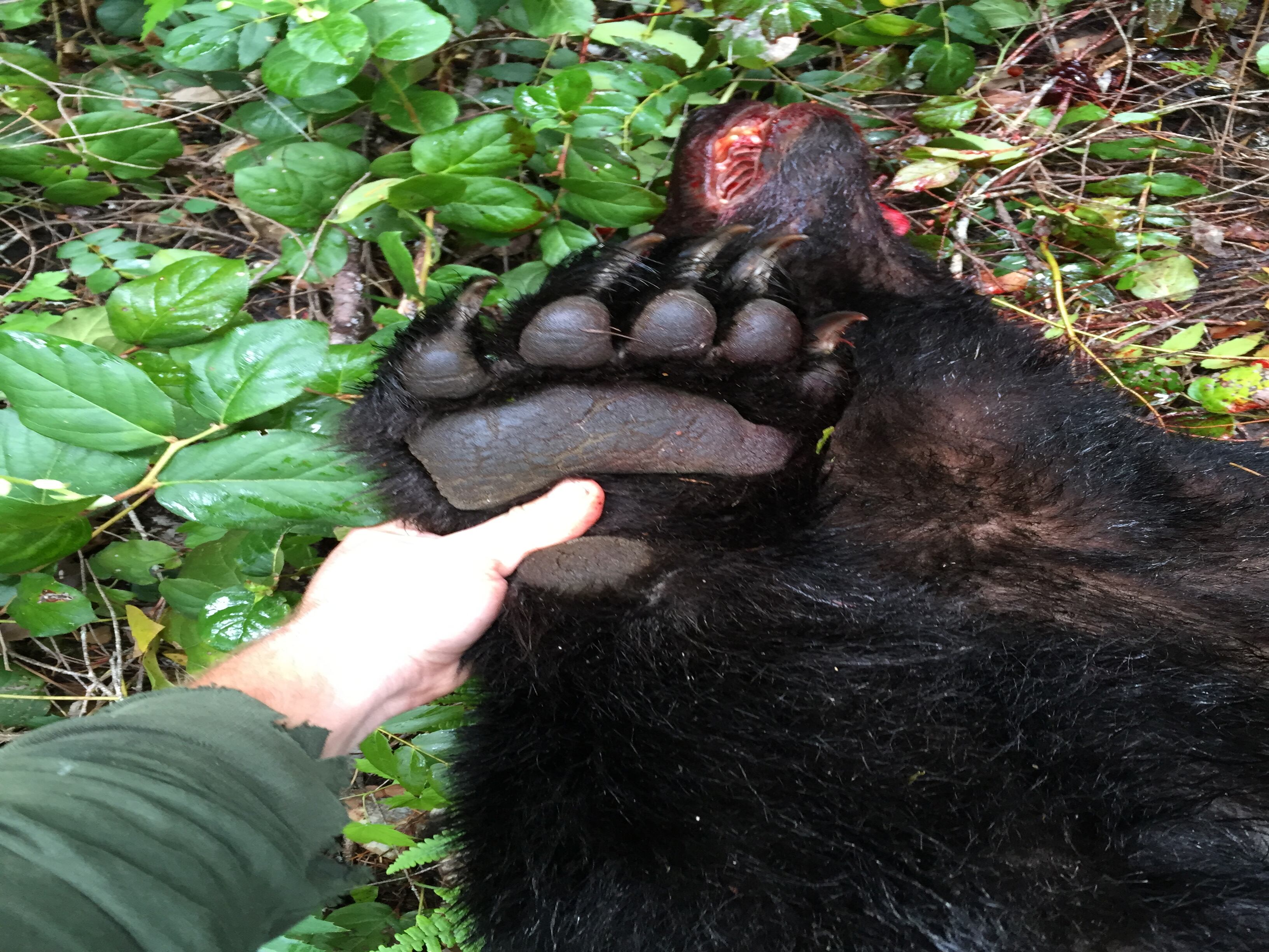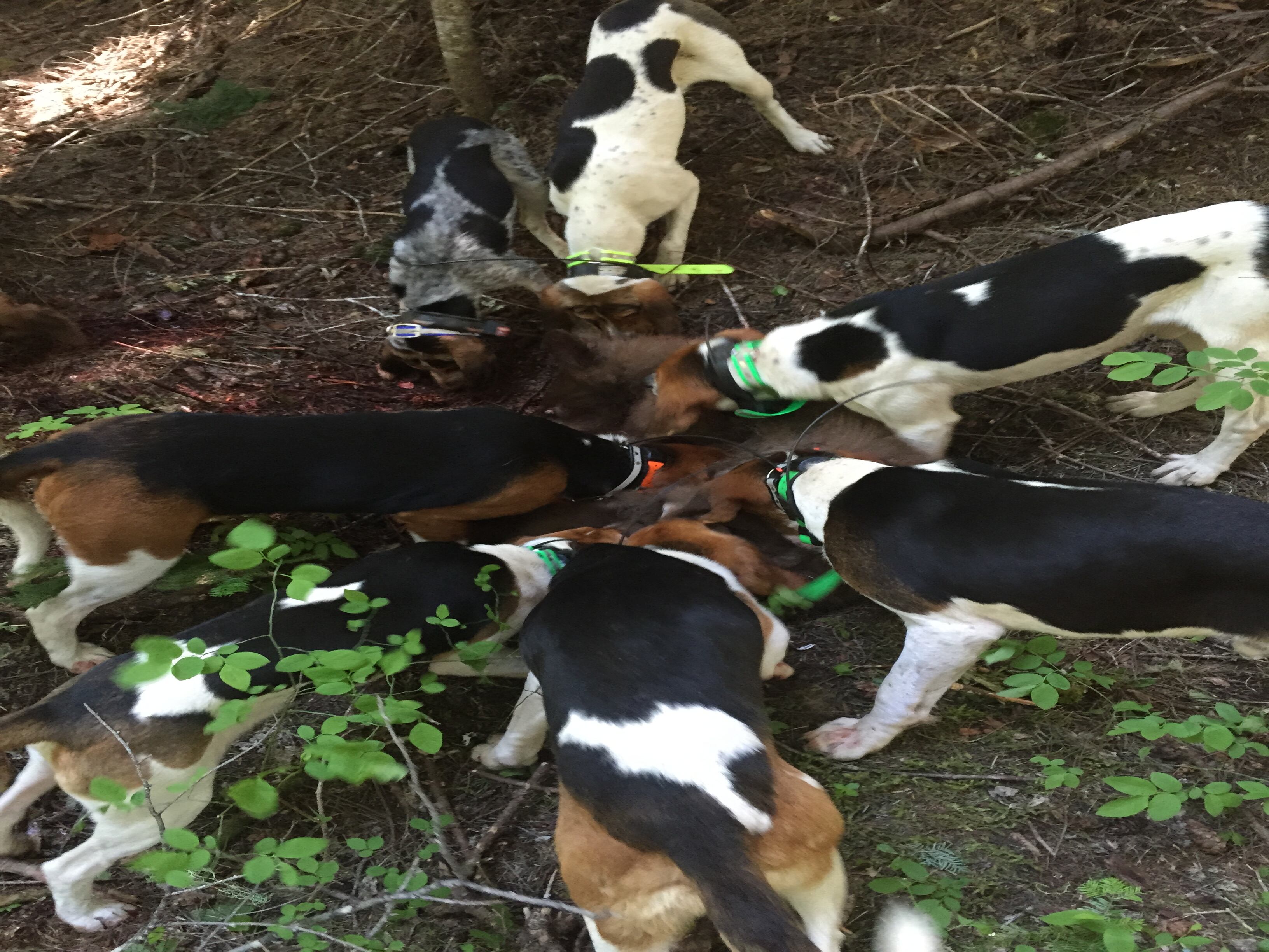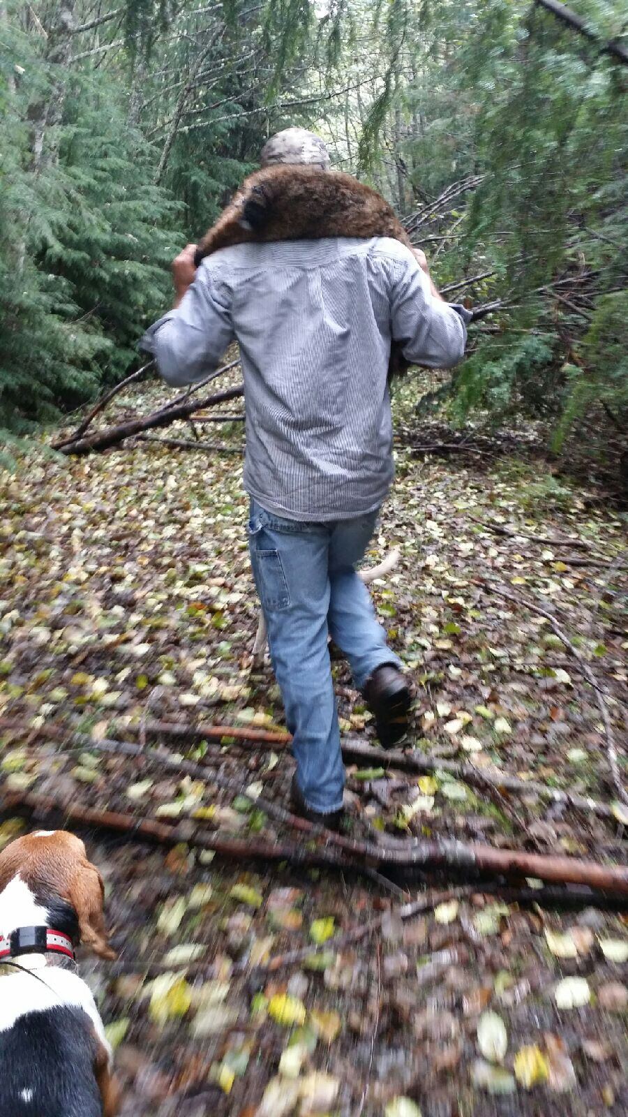 “I'm done hunting already. I killed a huge bear about 400 pounds this morning about two feet from the ground. Now we are headed to Joe’s to drop the dogs off except for Jip and Stormy. Jip has about a 10-inch gash on her back leg and [Stormy’s] stiches pulled out so we're headed to get them fixed.”