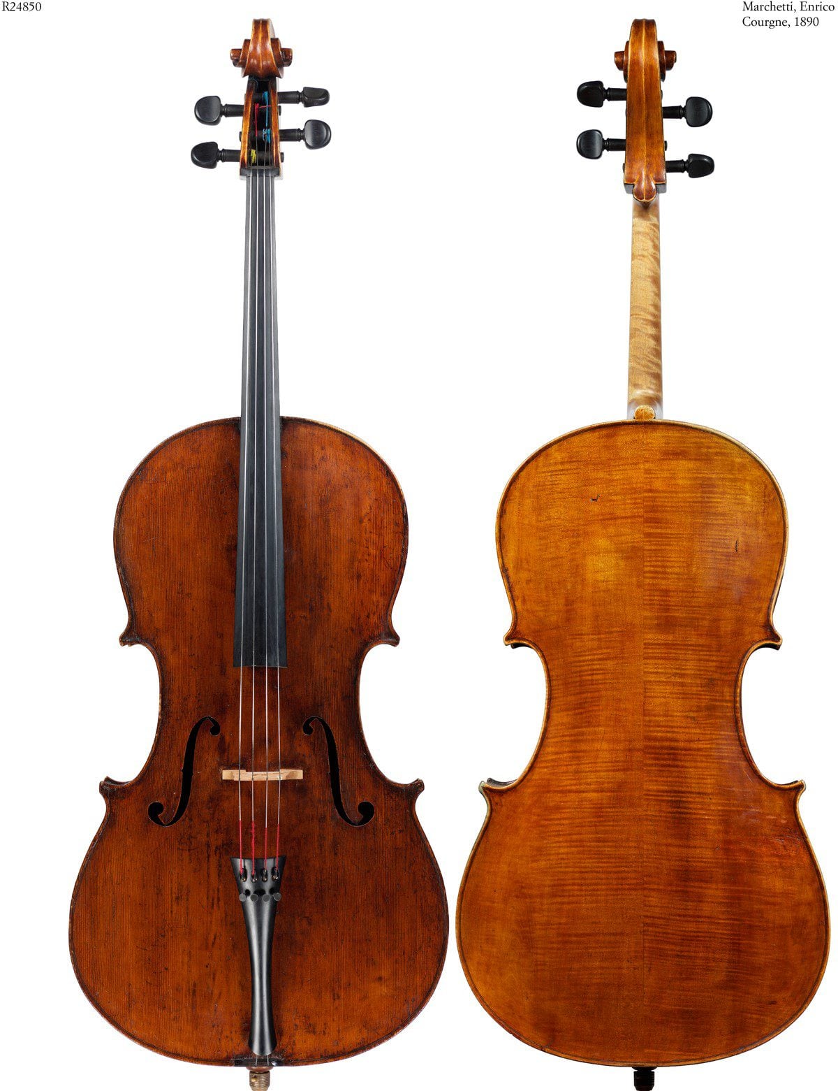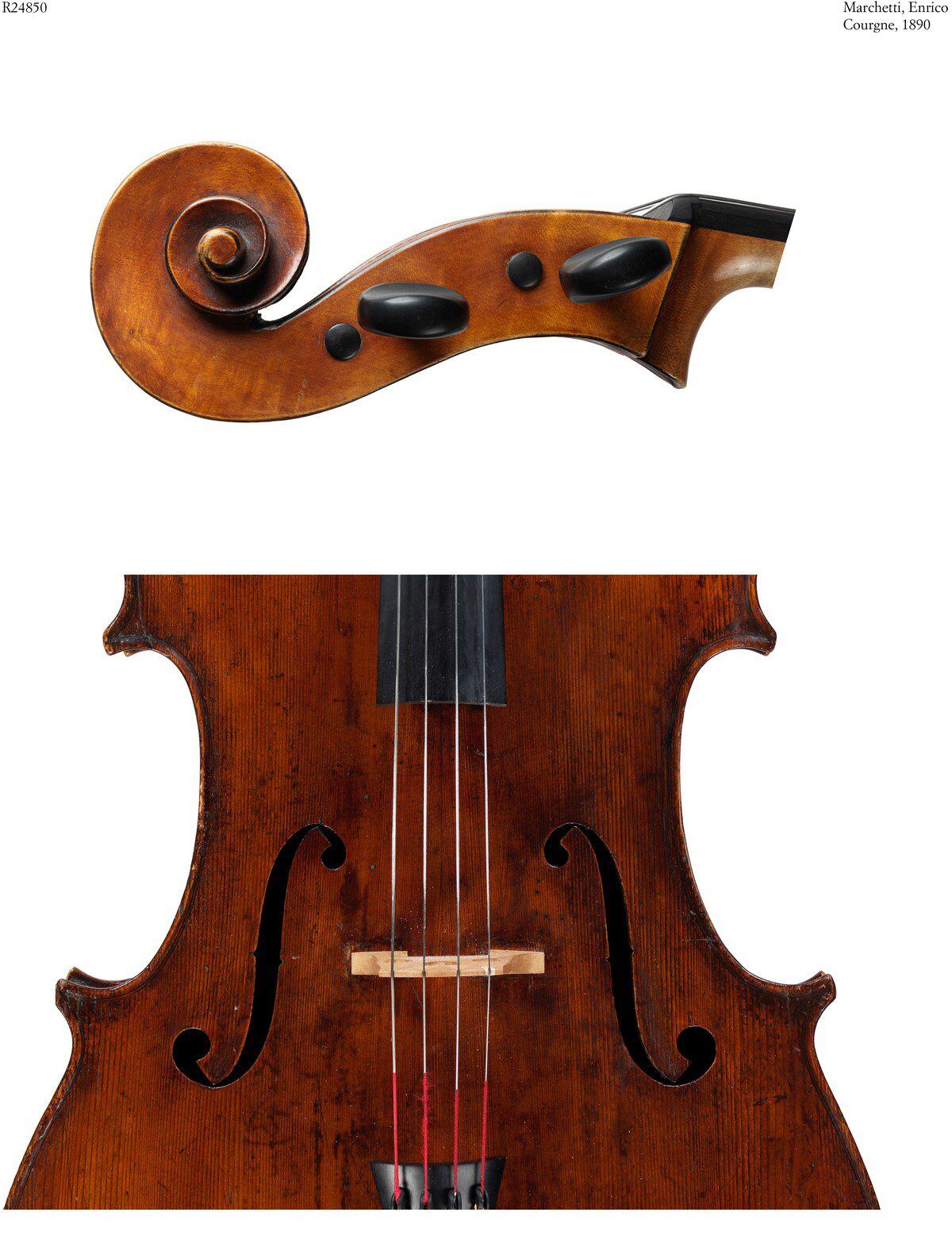The instrument is an 1890 Enrico Marchetti cello with a blue and black carbon fiber case. It had been stolen along with bows and several other items.