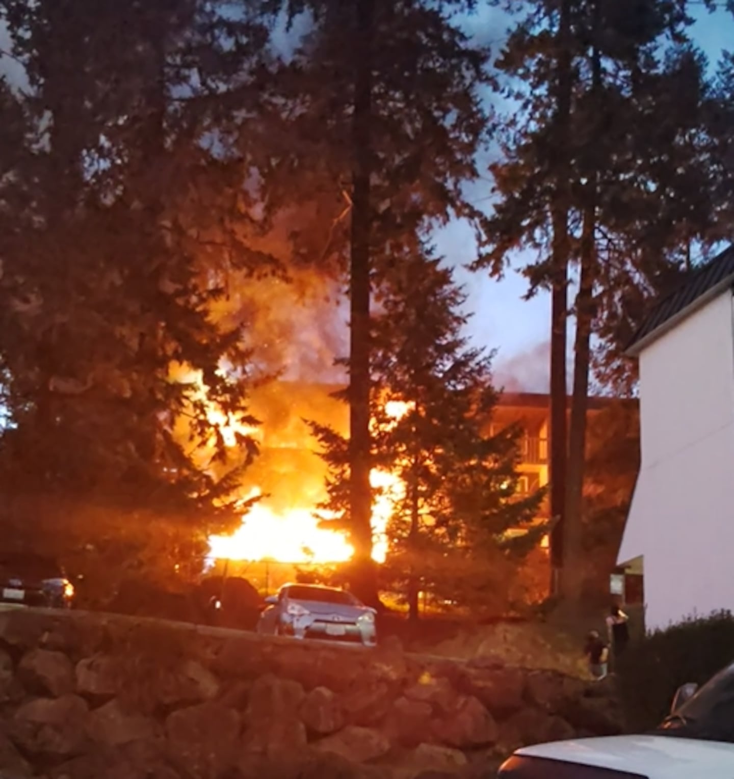 A viewer sent KIRO 7 News footage of the building engulfed in flames.