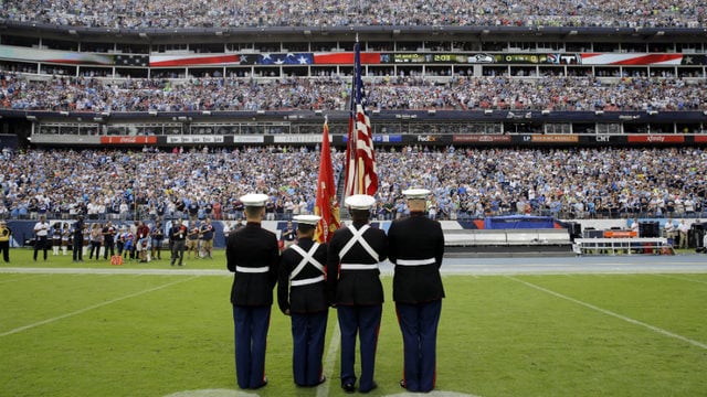 After the game, Michael Bennett told Gregg Bell of the Tacoma News Tribune that the team stood to honor the military ahead of Veterans Day.