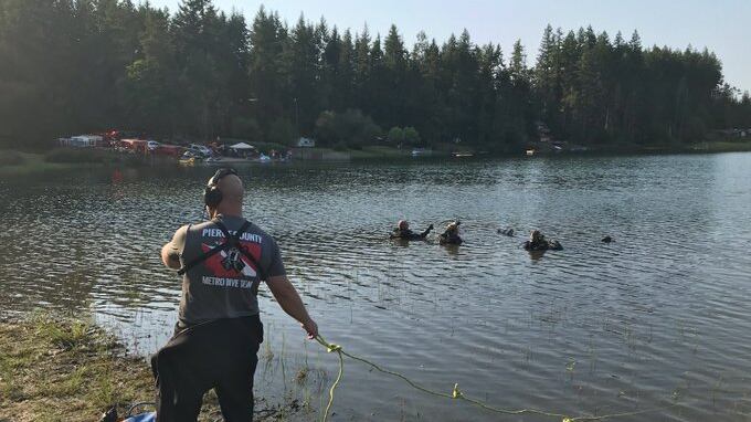 Firefighters with Key Peninsula Fire said they were called to the lake after a group reported hearing someone else had gone under as the lake sits on a boundary between Kitsap and Pierce counties.