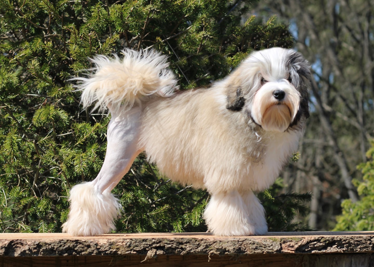 The Tibetan terrier, bred as companion dogs in Tibetan monasteries over 2,000 years ago, has an affectionate, easygoing personality that makes it adaptable to both city and rural living, especially in places that get snow. These canines' large, flat feet are uniquely suited to crossing snowy and mountainous terrain.