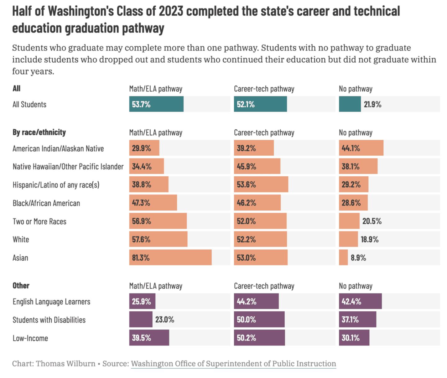 Five years after Washington rolled out its pathways, they appear to have helped more students who aren't college-bound to graduate, which was part of the goal. But the system has also created new issues and replicated some old ones.
