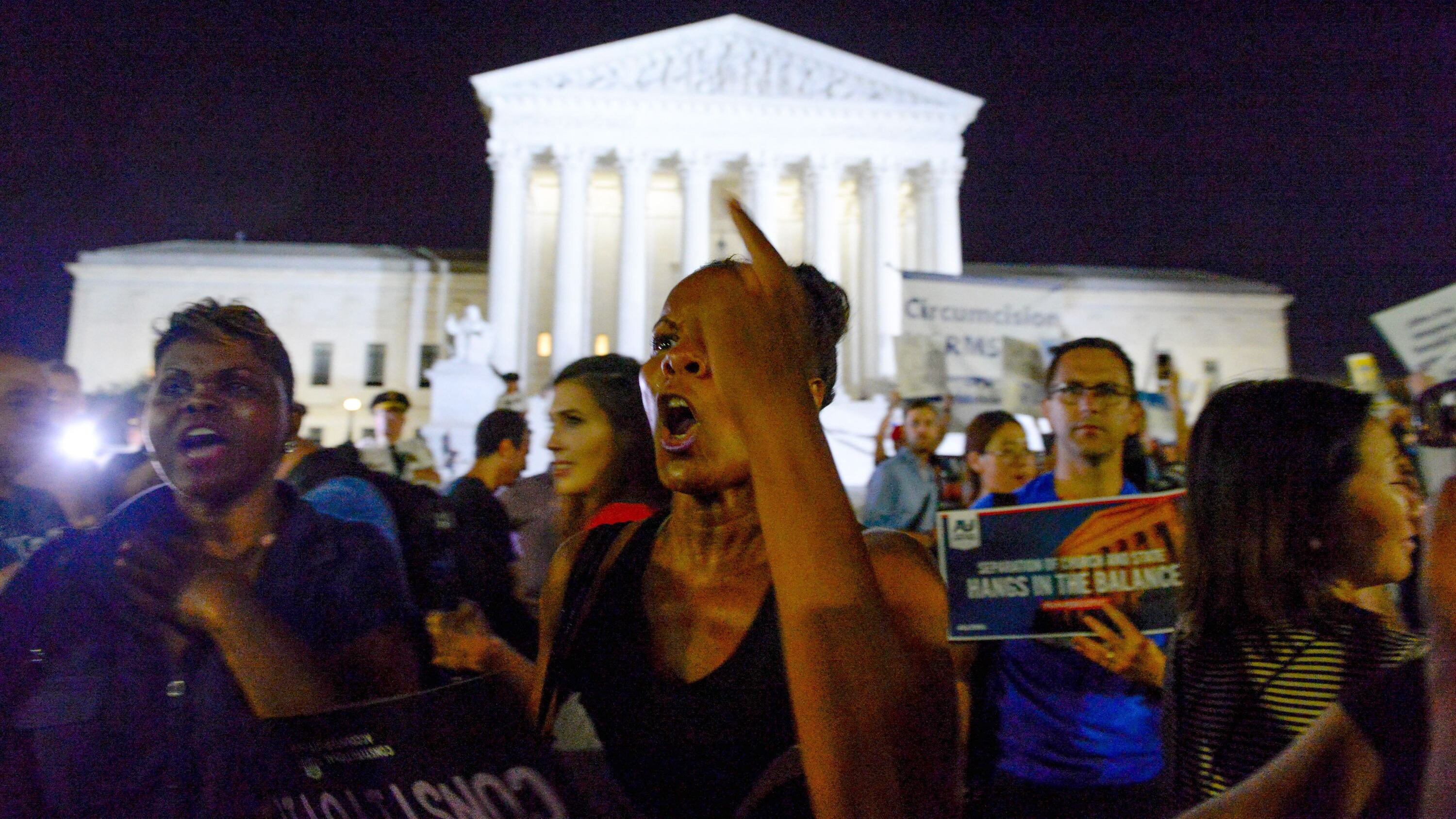 "Obviously we're looking at a Supreme Court justice that could radically shift the court," said Neera Tanden, CEO of the Center of American Progress, one of the groups that organized the rally. "I think that there has been incredible concern and outrage and anger about that."