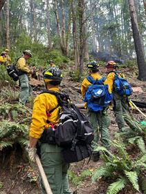 Kent-Auburn brush fire Firefighters dig a fire line around the north side of the fire and falling trees that have been significantly damaged by the fire. (Puget Sound Fire)