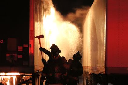 PHOTOS: Semi-trailers burn next to Everett Value Village