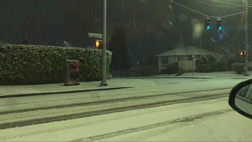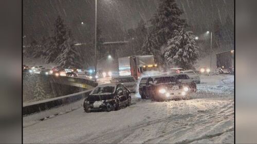 Thurston County snow 2-15-24 About 50 cars were stuck in a ditch because of the conditions on southbound I-5, just south of Olympia at the Highway 101 interchange.