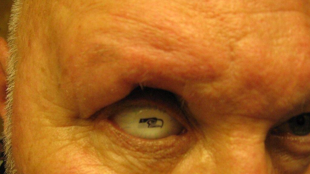 “I had mentioned it to my wife. She wasn’t a big Seahawks fan. I said it’d be cool to have Seahawks logo right there in my eye.”