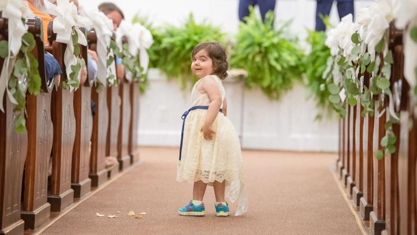 Skye Savren-McCormick, 3, proudly tossed flowers down the aisle for the bride, 26-year-old Hayden Hatfield Ryals. (Credit: Mark Broadway Photography)