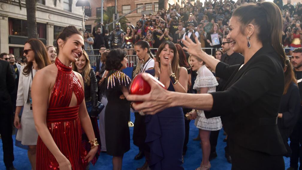 Carter, 65, made the Wonder Woman character famous during its television series run from 1975 to 1979. Gadot is starring in the movie version, which debuts nationally on June 2. The two women reunited at the Pantages Theatre, along with the film’s director, Patty Jenkins.