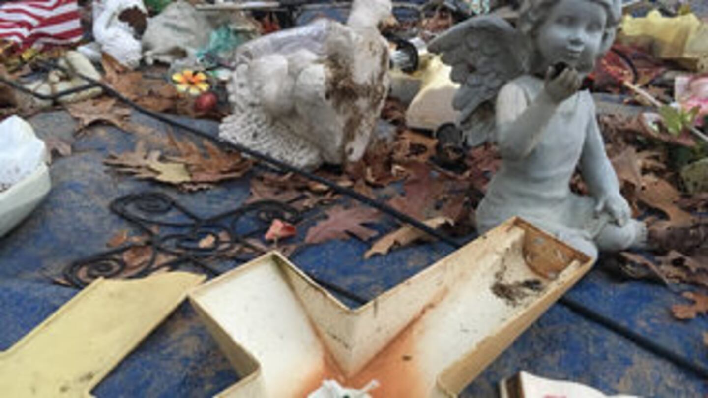 Ellen Jackson, whose son was buried at the site in 2015, said she found a butterfly, a small helmet and other items that were on his headstone among dozens of other items that were laid out on a tarp.