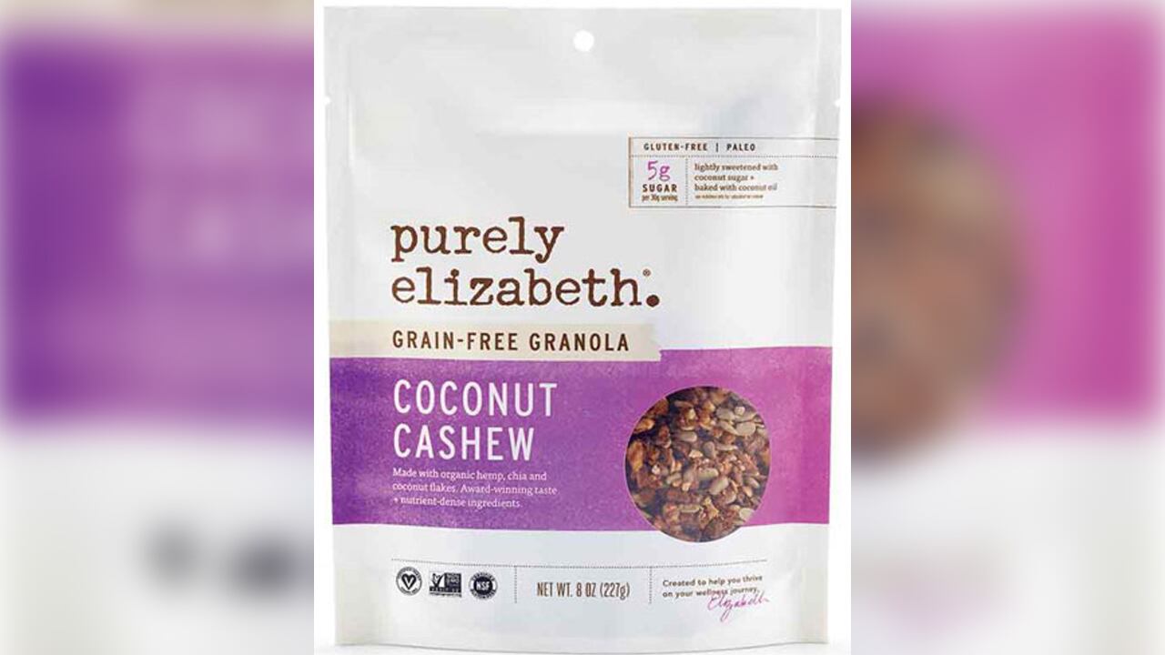 According to recall information on the company's website, Purely Elizabeth's Coconut Cashew Grain-Free Granola, Banana Nut Butter Grain-Free Granola, Pumpkin Spice + Ashwagandha Grain-Free Superfood Granola or Grain-Free Bars may be impacted by the recall.